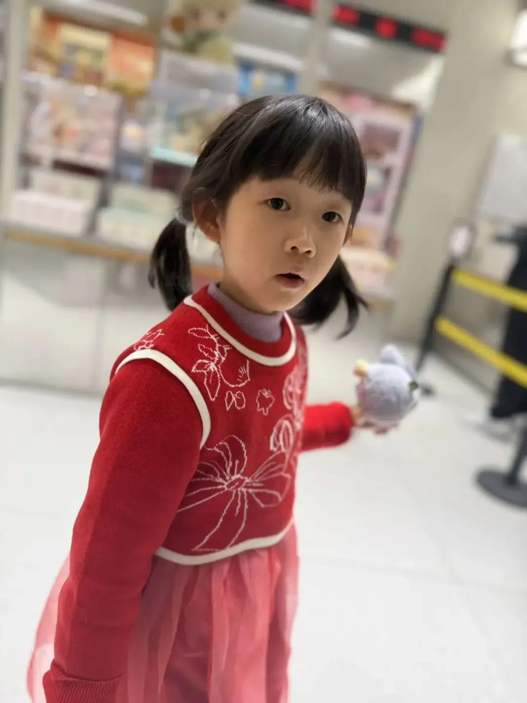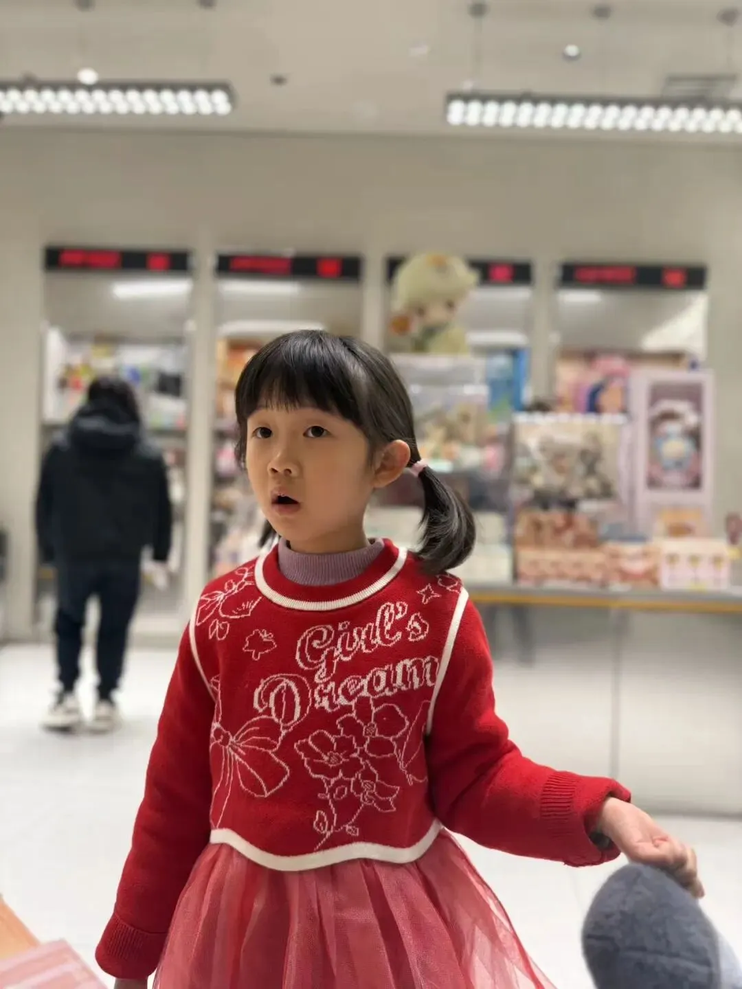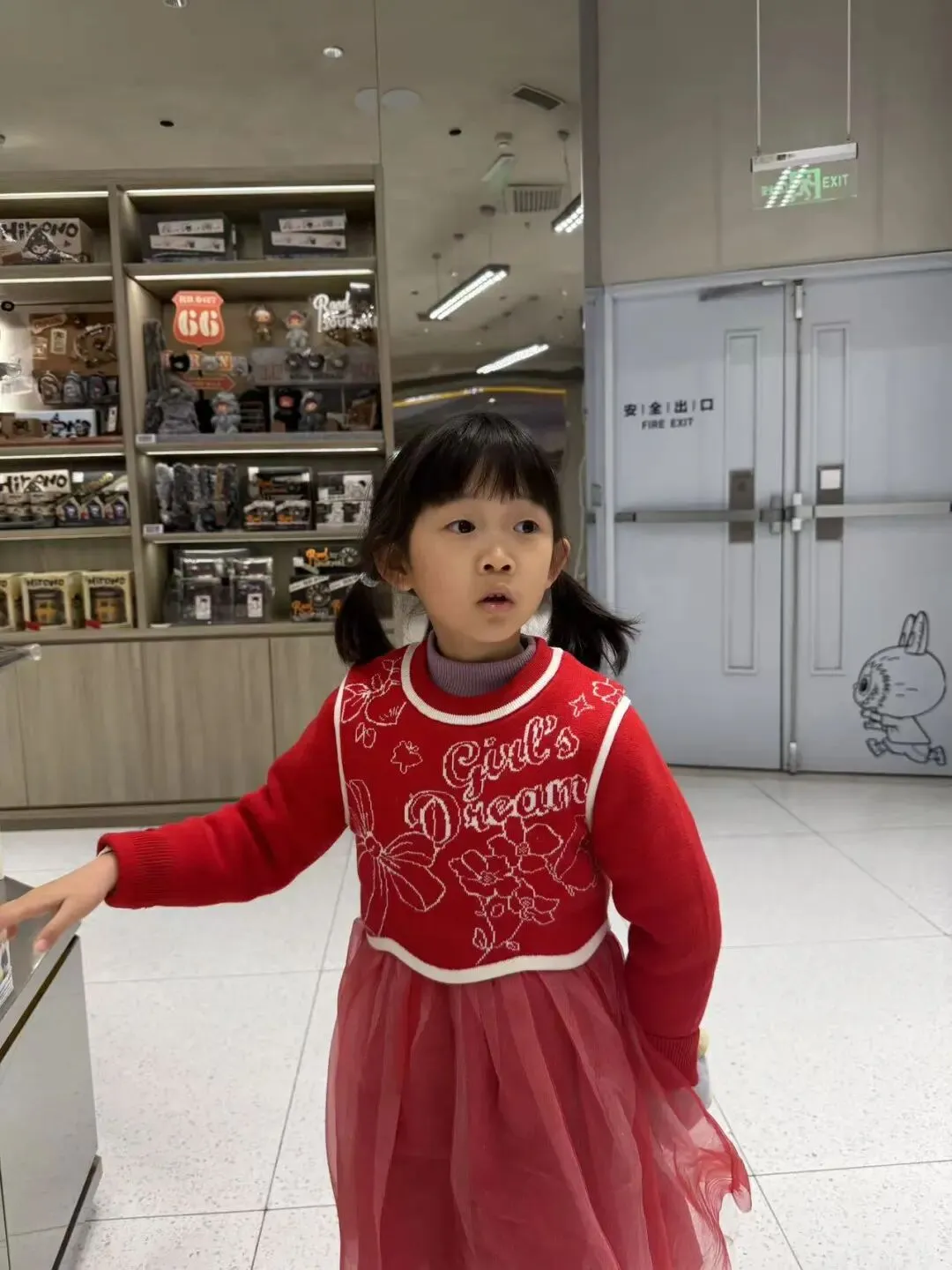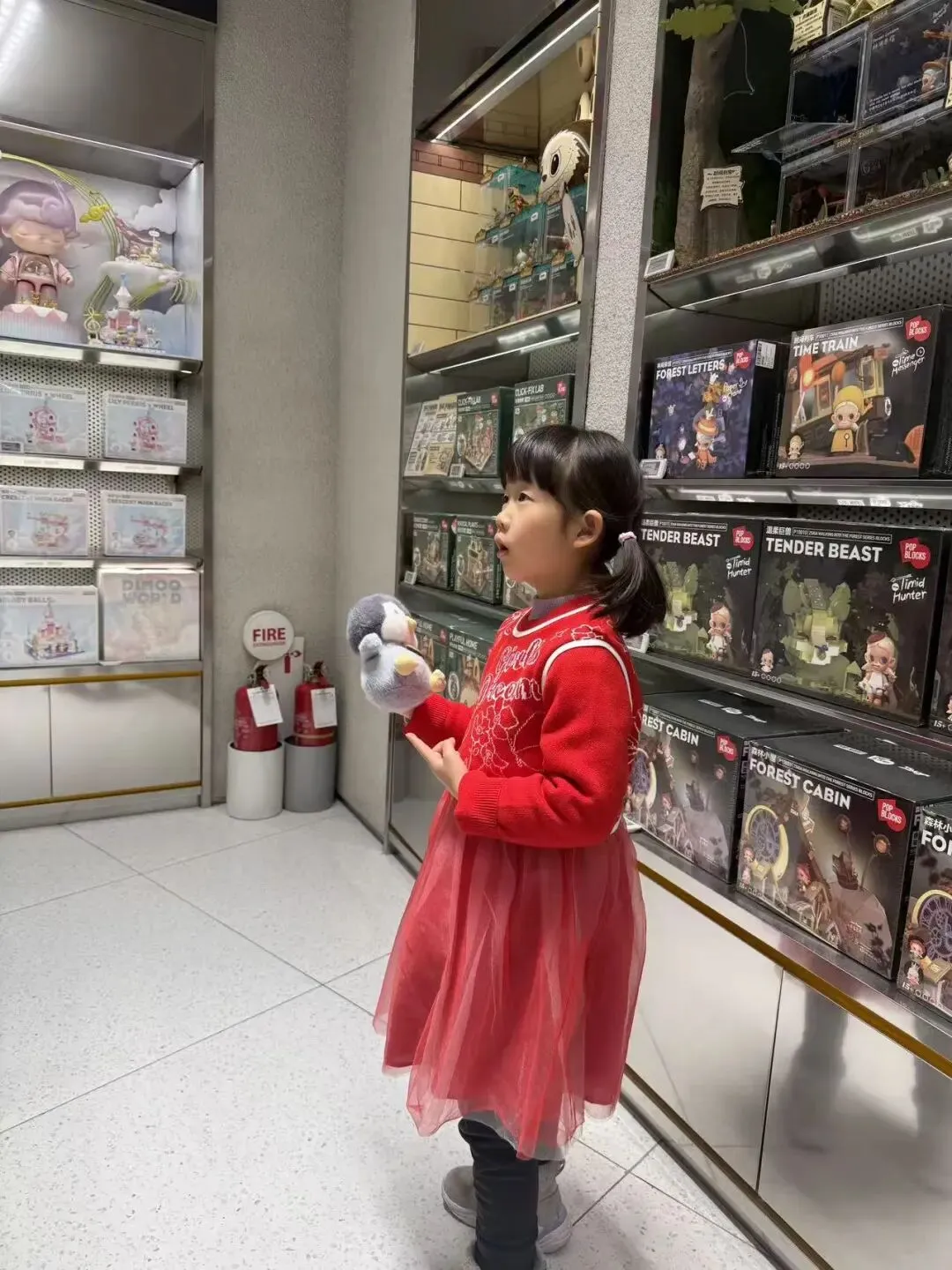爸爸带我去楼下的泡泡玛特买东西。