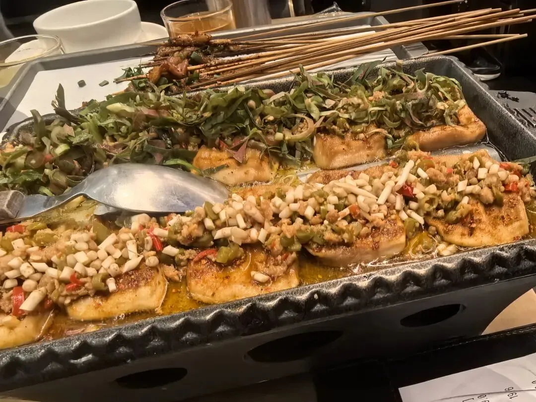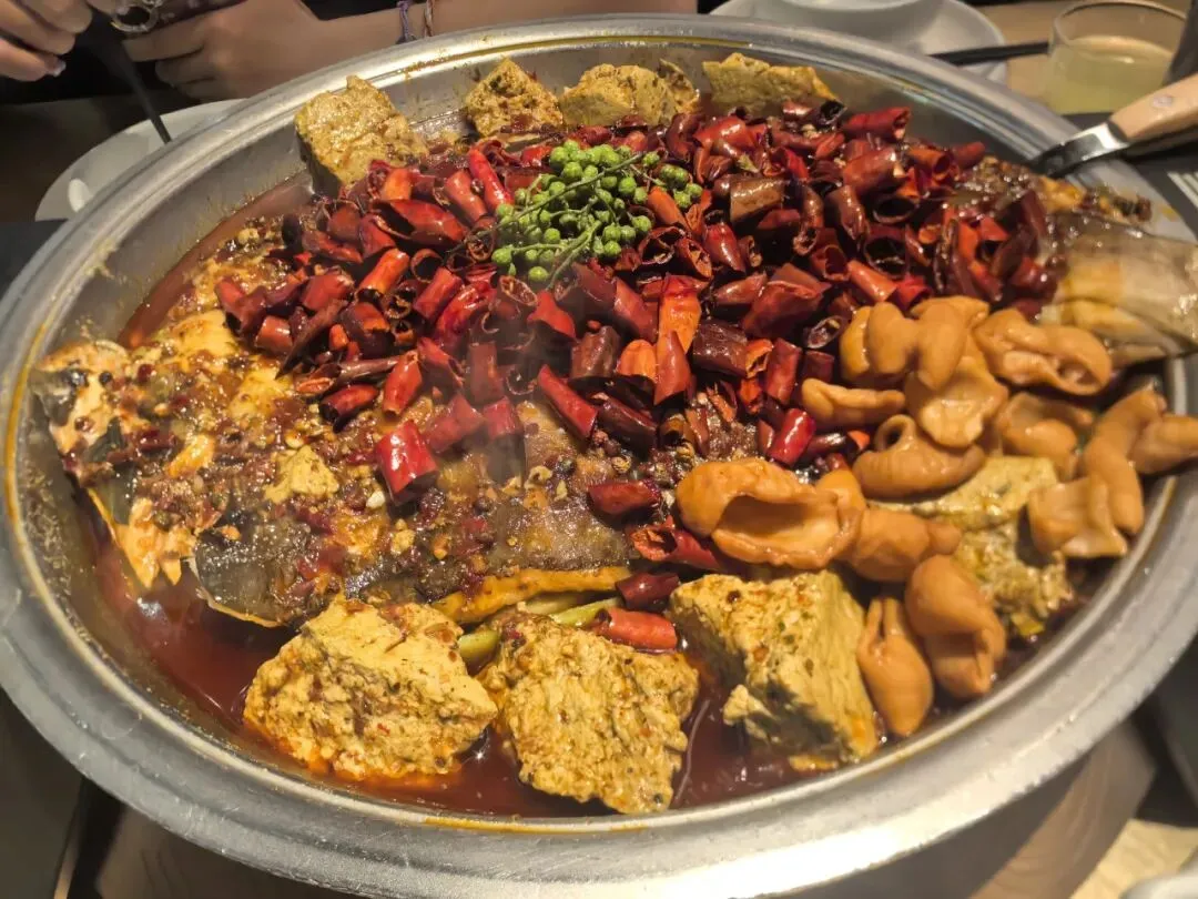 妈妈点了麻辣的烤鱼。