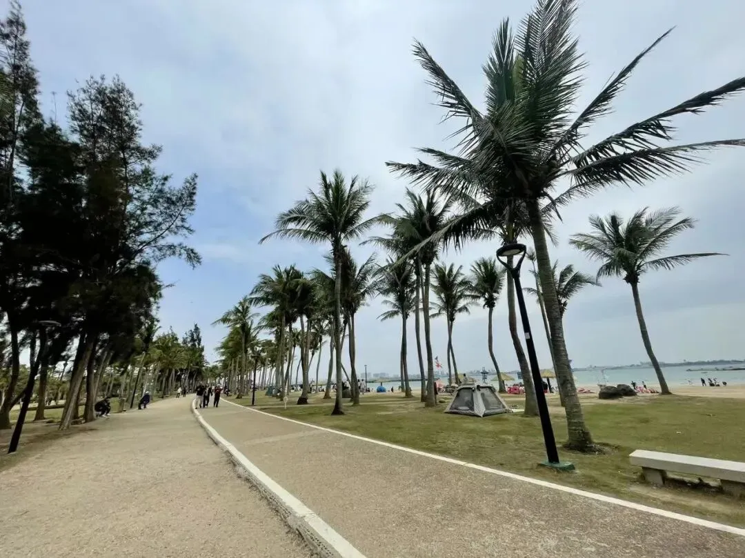 当然,松山湖本身并不靠风景取胜,强在产业吧,聚集了很多中国民营高科技企业。 除夕下午四五点,停车场停满了,都是来骑行的年轻人,很多年轻父母+小孩的骑行组合,还有老人+推车+小孩的组合,让人感觉这天就是一个普通的周末,而不是传统除夕的样子。 二、湛江:旅游区都在卖海景房,餐厅吃饭靠等 广东的海都很蓝很清,不像浙江和上海的海很黄……老城区大片的民宅很旧很破,看起来也不会搞城市更新。不管是民国风情街,还是金沙湾,吃饭的餐厅总是要等,点菜40分钟后还没有上一个菜,真叫人抓狂。 家里当过兵的老人,只对湛江的十里军港感兴趣,看军舰要到本地人爱逛的公园看。