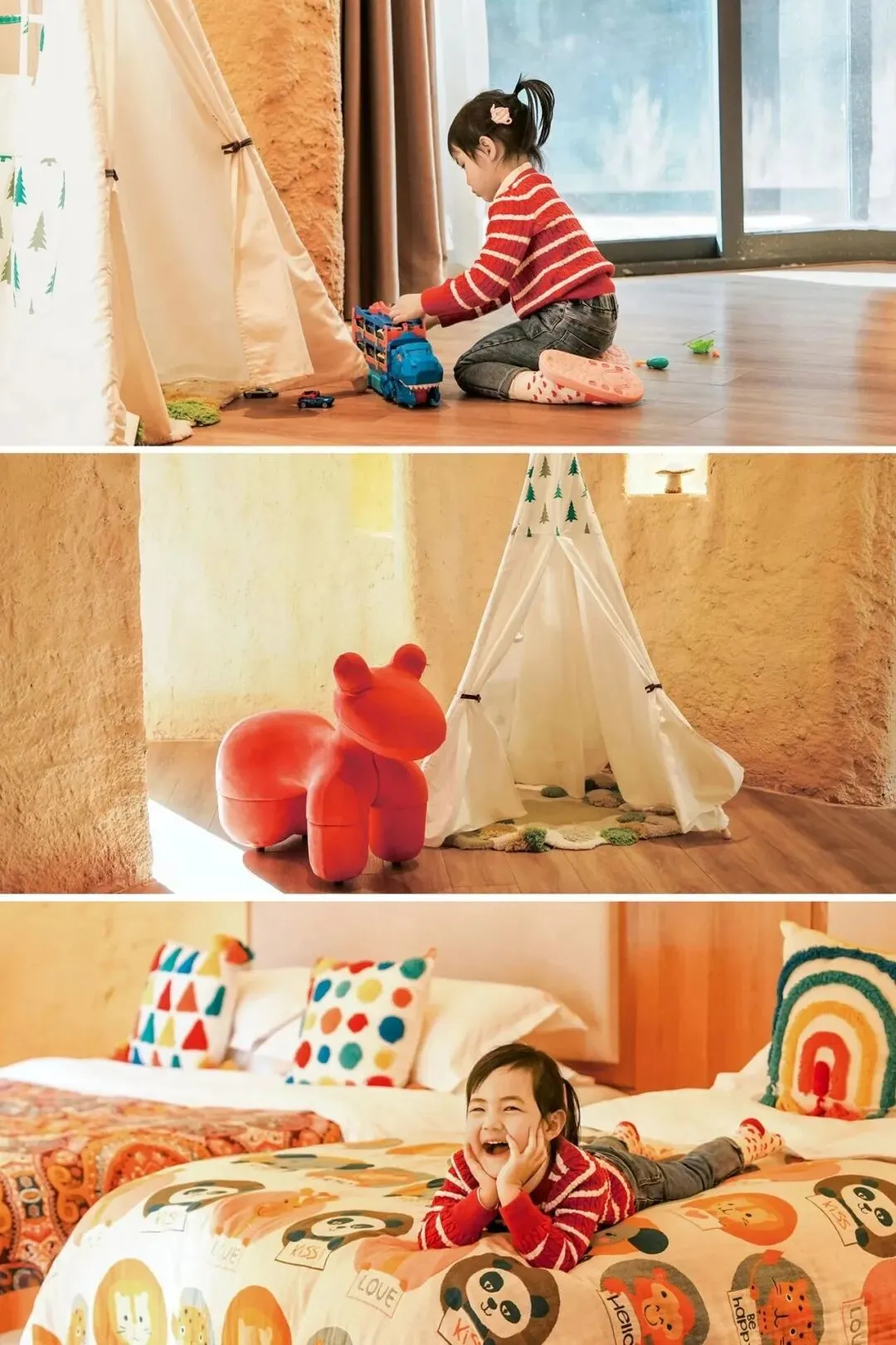 酒店特色亲子主题房,“小羊肖恩”、“时空龙骑士”、“小怪兽阿萌”、“洞穴房”多种不同特色亲子主题房选择。儿童游乐区、儿童温泉区,让小朋友们尽情沉浸其中。