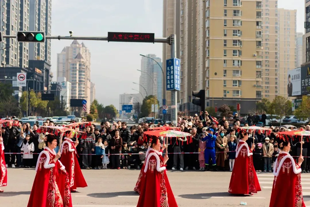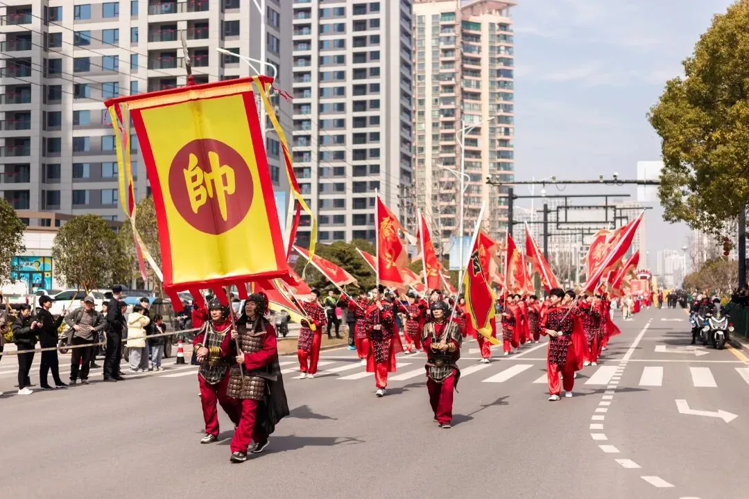 彩旗摇曳,锣鼓震天