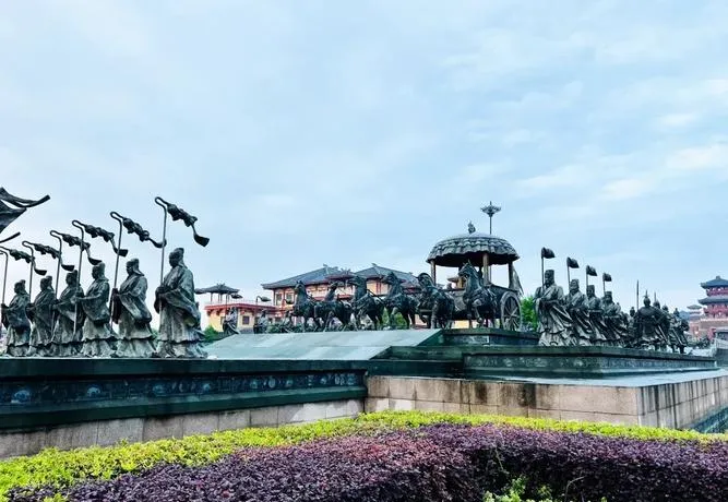 楚汉相争雕塑就立在广场中央,项羽和刘邦对峙的场景,做得挺大气,但这个雕塑的有意思之处不在艺术水平,而在于它的叙事立场,没有刻意拔高谁贬低谁,就是两个人对着站,各有各的气势,各有各的坚持,这种处理方式很罕见,因为大部分地方的历史雕塑都会带价值判断,但这个不带,就是还原当时的对峙状态,让你自己去想谁对谁错。晚上雕塑会打灯,很多人在这拍照,但更多人就是路过看一眼,不会专门凑近,这种"日常化"的存在方式反而让这个雕塑融入了城市生活。