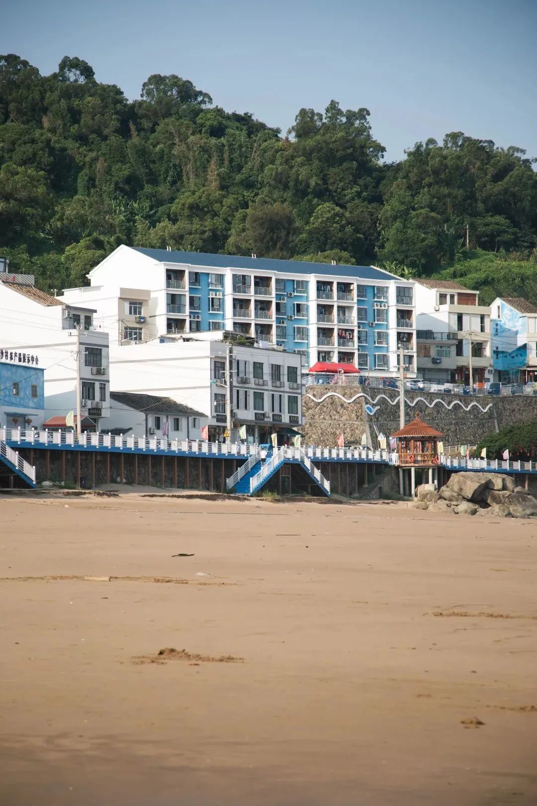 霞关长沙村,因一条长800米,宽220米的沙滩而闻名,碧海蓝天,风景宜人。