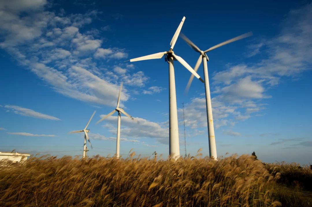 一阵风吹来,35个大风车悠闲转动,时有绚丽的晚霞照在风车旋转不停的叶子上,令人驻足观赏。