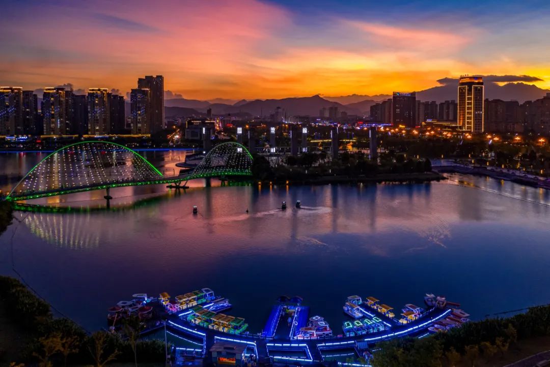 苍南中心湖位于灵溪镇人民大道,这里配备了游船码头、儿童乐园、生态廊道、长步道、音乐喷泉等项目,是县城居民休闲散步的绝佳之地。