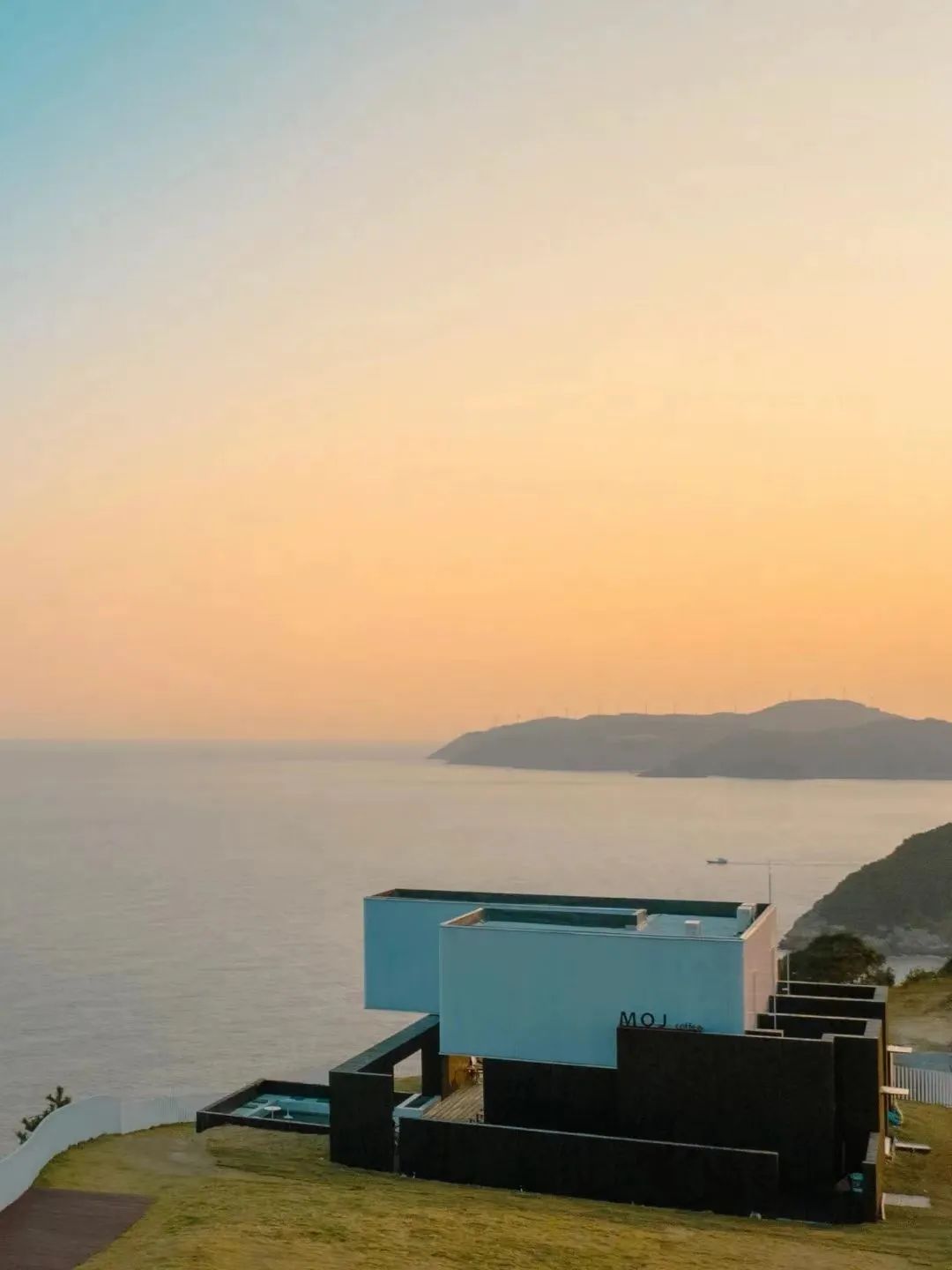 蓝白色的建筑与无边无尽的大海、广阔的天空融为一体,蔚蓝一片,让人心旷神怡。