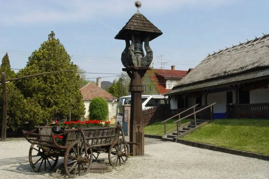 房屋建在多瑙河畔山坡上,采用土坯建造,屋顶覆芦苇,冬暖夏凉。展示内容包括卡洛乔刺绣、里塞林刺绣、彩蛋刺绣、家具刺绣和墙面刺绣,呈现独特的匈牙利民间艺术风貌。