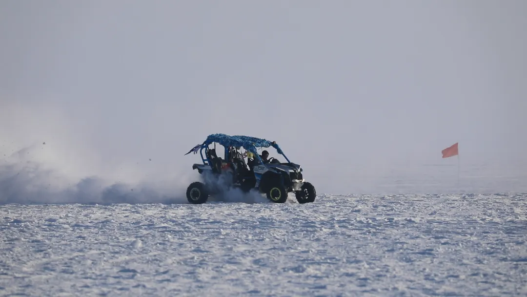 越野车在冰面上疾驰,引擎轰鸣与雪浪翻涌,点燃了冬日的热血与活力。