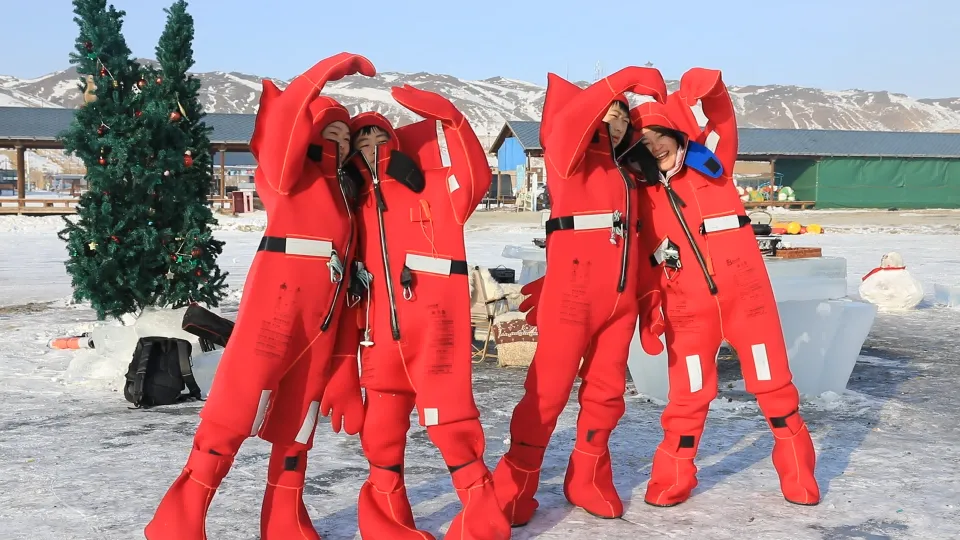 游客身着专业保暖服,体验“冰海漂浮”,感受极致的冬日刺激与乐趣。