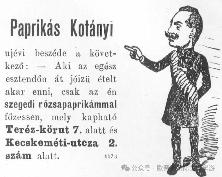 János Kotányi(Janos Kotanyi)的商业智慧,使卡洛乔辣椒粉从地方特色变为全国知名品牌。1892年的 “玫瑰辣椒”广告,让这抹红色首次以商品身份走向整个匈牙利,也进一步奠定了 卡洛乔“辣椒之都” 的地位。
