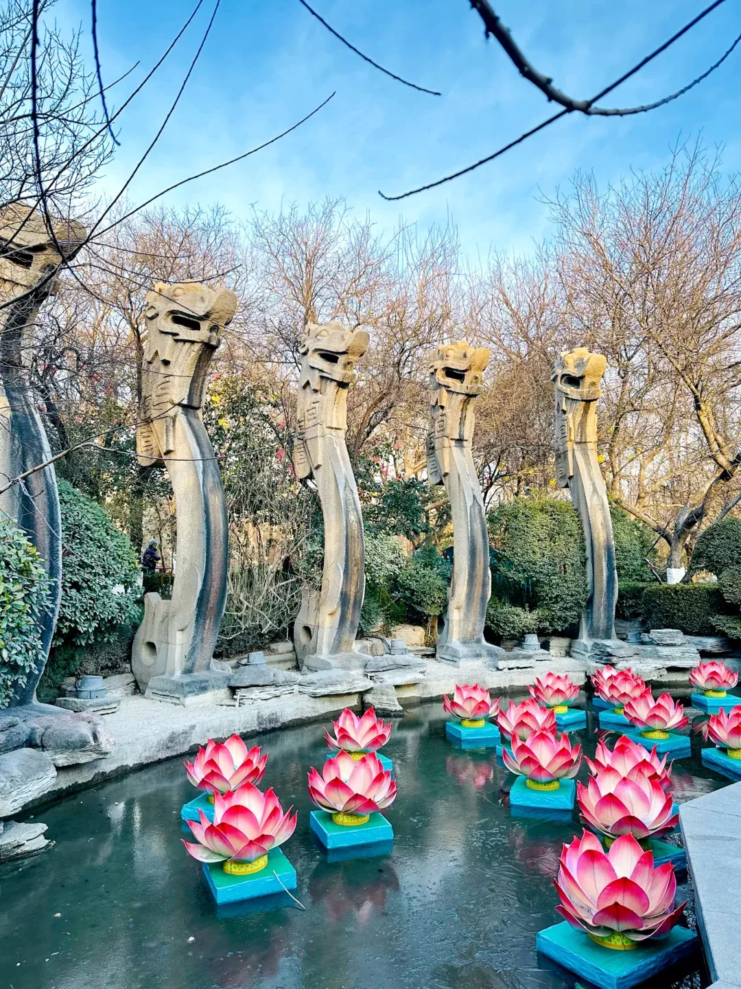 游览重点:逛五龙喷泉,摸潭边石雕龙头祈福,看锦鲤戏水,参观秦琼故居,感受“清泉石上流”的野趣;园内绿植茂密,空气清新,适合慢逛放松,缓解前半程的疲惫;顺路观赏园内花灯,感受与趵突泉花灯不同的韵味。
