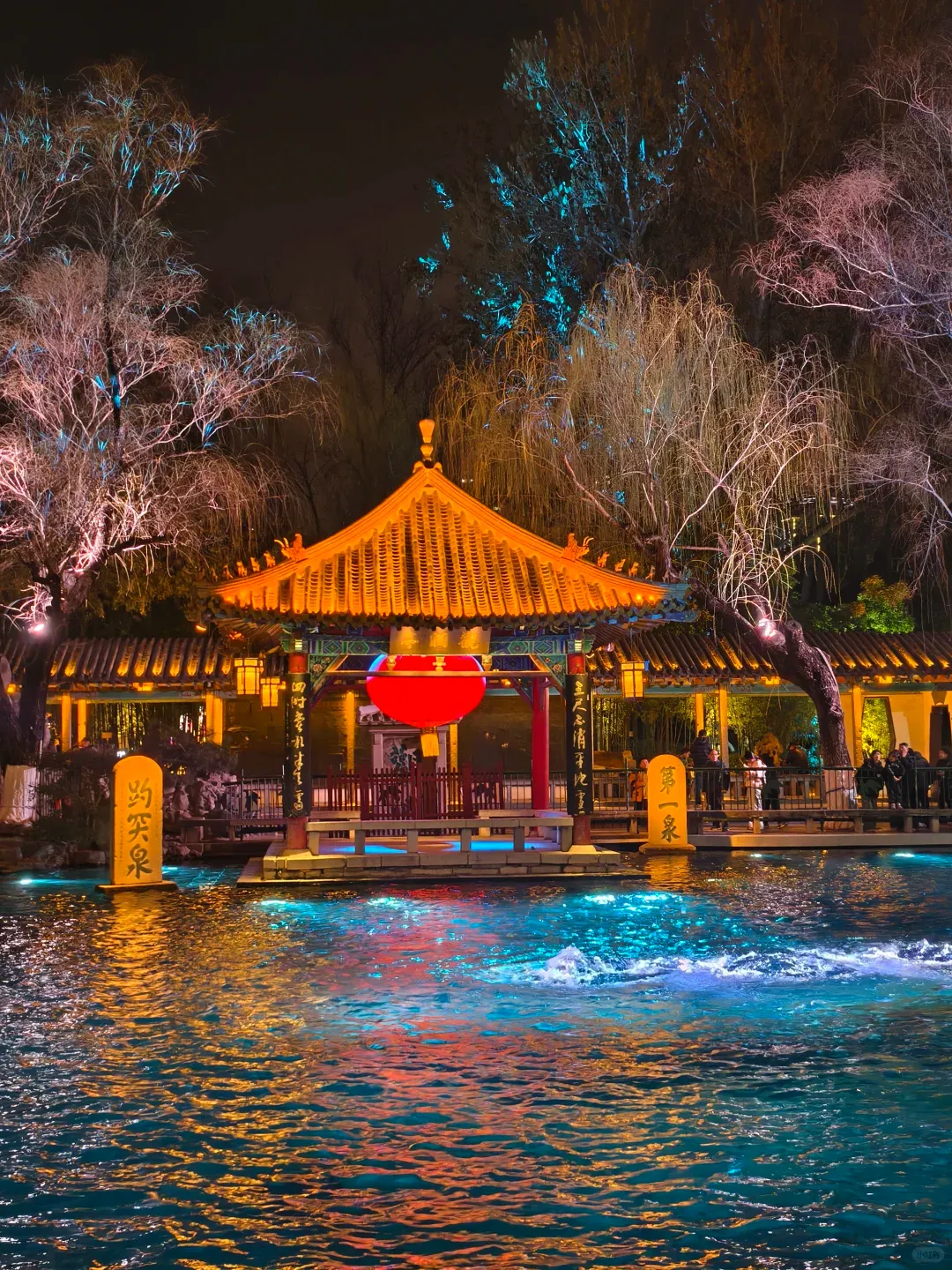 游览重点:从趵突泉东门/北门入园(避开南门人潮),先打卡“天下第一泉”石碑、观澜亭,观赏三股水喷涌奇观(清晨水量最大,午后也能看到明显喷涌);逛李清照纪念堂、万竹园,感受人文与自然的交融;提前熟悉花灯布局,重点关注瑞马主题灯组、如梦令水面灯组,为傍晚赏灯做准备;18:00花灯亮灯,可在园内停留至17:30左右,看日景与花灯衔接的绝美画面,还能观看趵突腾空全息水幕秀(夜场含此项目)。