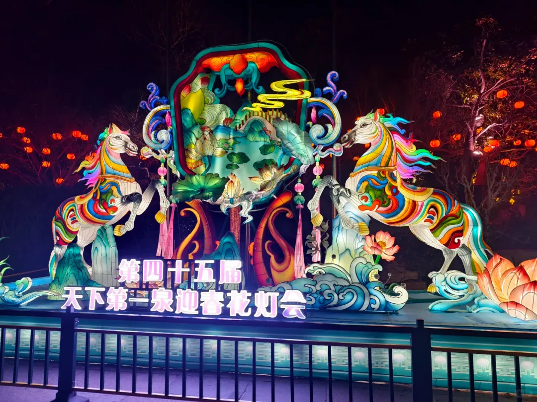 打卡提示:观澜亭(泉水+花灯同框最佳点位)、李清照纪念堂(古风拍照)、瑞马大灯组(马年必拍,寓意吉祥),傍晚花灯初亮时,光线柔和,拍灯影映泉水的画面绝美。