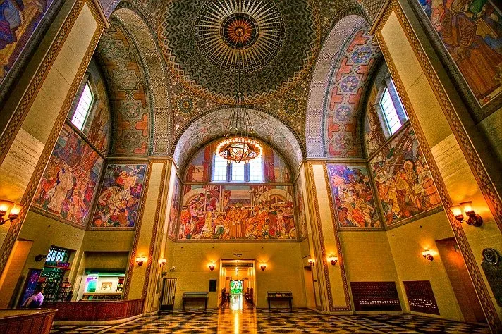 建于1926年的洛杉矶中央图书馆是一个即使你没兴趣看书也值得一来的地方。图书馆大堂有一个五彩缤纷的天花板壁画,外观有一种戏剧性的艺术感。不妨来散散步、拍些照、顺便再安静地看一会书。图书馆旁边有一处停车楼,可以向图书馆工作人员要 validation 减免停车费。