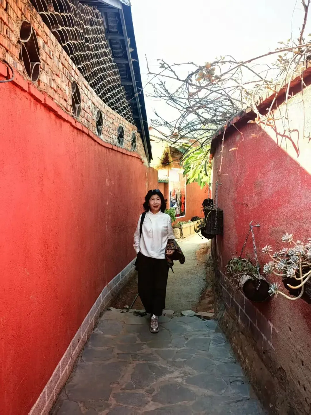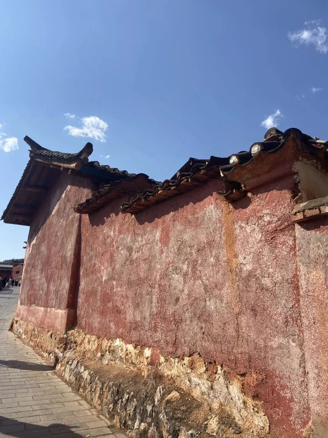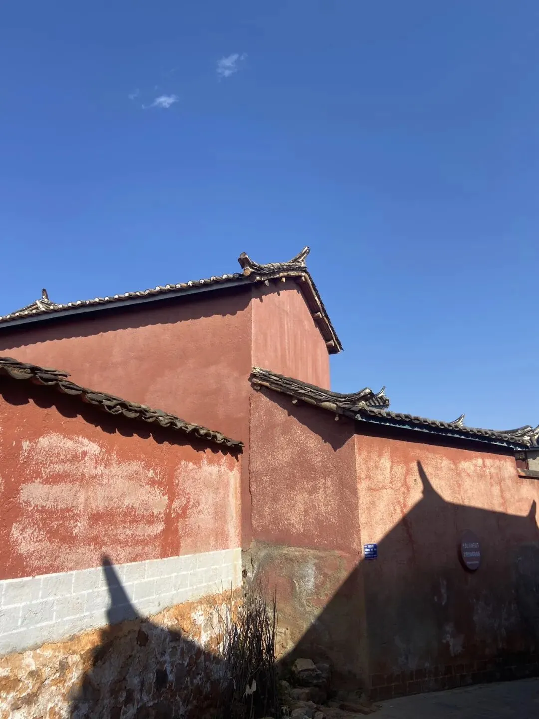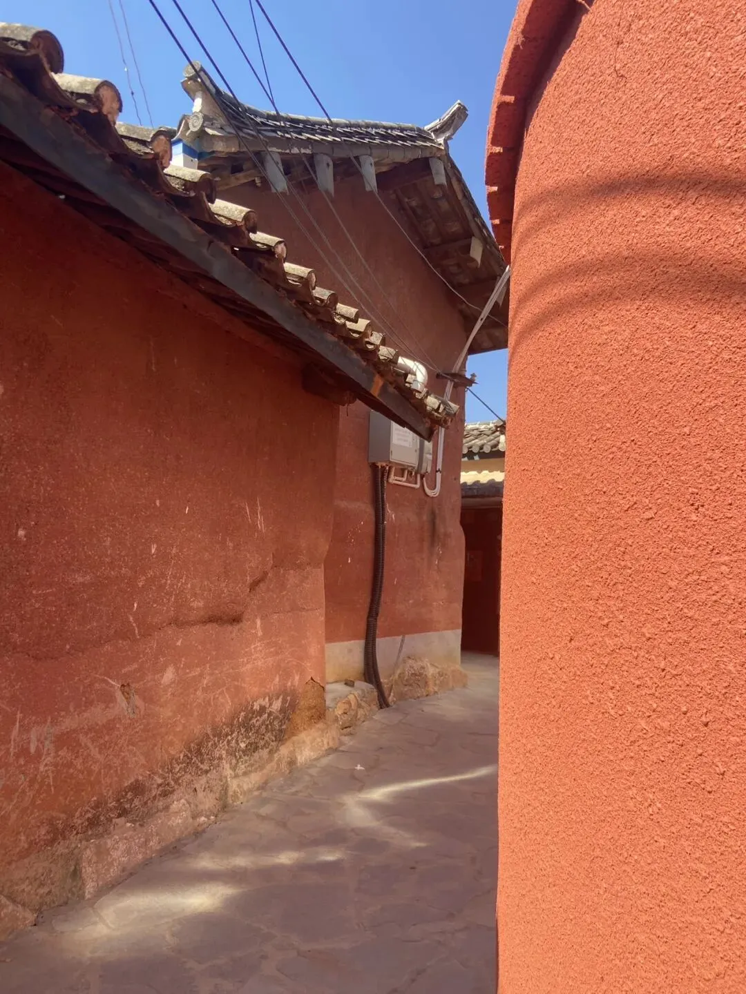 “除了红墙还是红墙”,但红墙本身就是国宝。这是典型的“徽派风骨,彝乡肌理”: