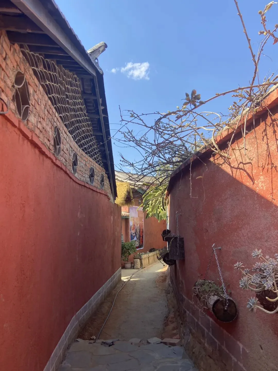 开始在村巷里溜达,除了红墙还是红墙,特色不鲜明,几个很有历史的老屋锁起来没开门,路面较脏,村民们服饰和游客一样,只在景区中心那个院坝看见着民族服饰的人准备围着圆心跳舞,因为当时已经非常失望,遂没有停留观看。