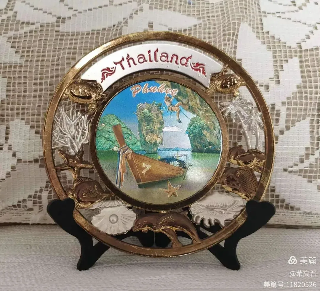 泰国,我们曾经两次踏足,除了首都曼谷,重点游玩的是普吉岛,所以离开时还是选择了铸有普吉岛景色的纪念盘(毕竟这东西不占地方好收纳)还有一个漂亮的涂金大象头工艺品。
