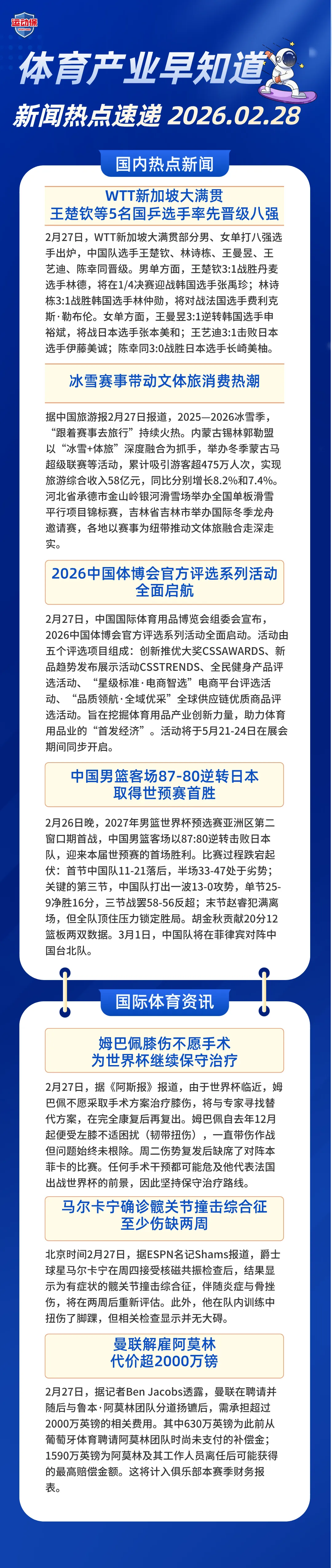 体育产业早知道丨体育旅游冰雪季吸金58亿,大满贯国乒强势晋级(2026.02.28)