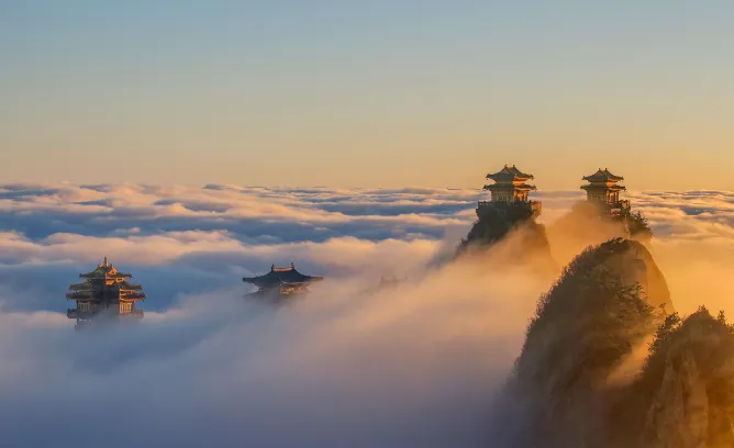老君山因东周道家始祖老子归隐修炼于此而得名,其形成于十九亿年前的大陆造山运动。这里千姿百态的景观令人叹为观止,中天门、金顶、老君庙等景点各具特色。游客在此可领略到老君山的雄奇险峻与秀美幽静。