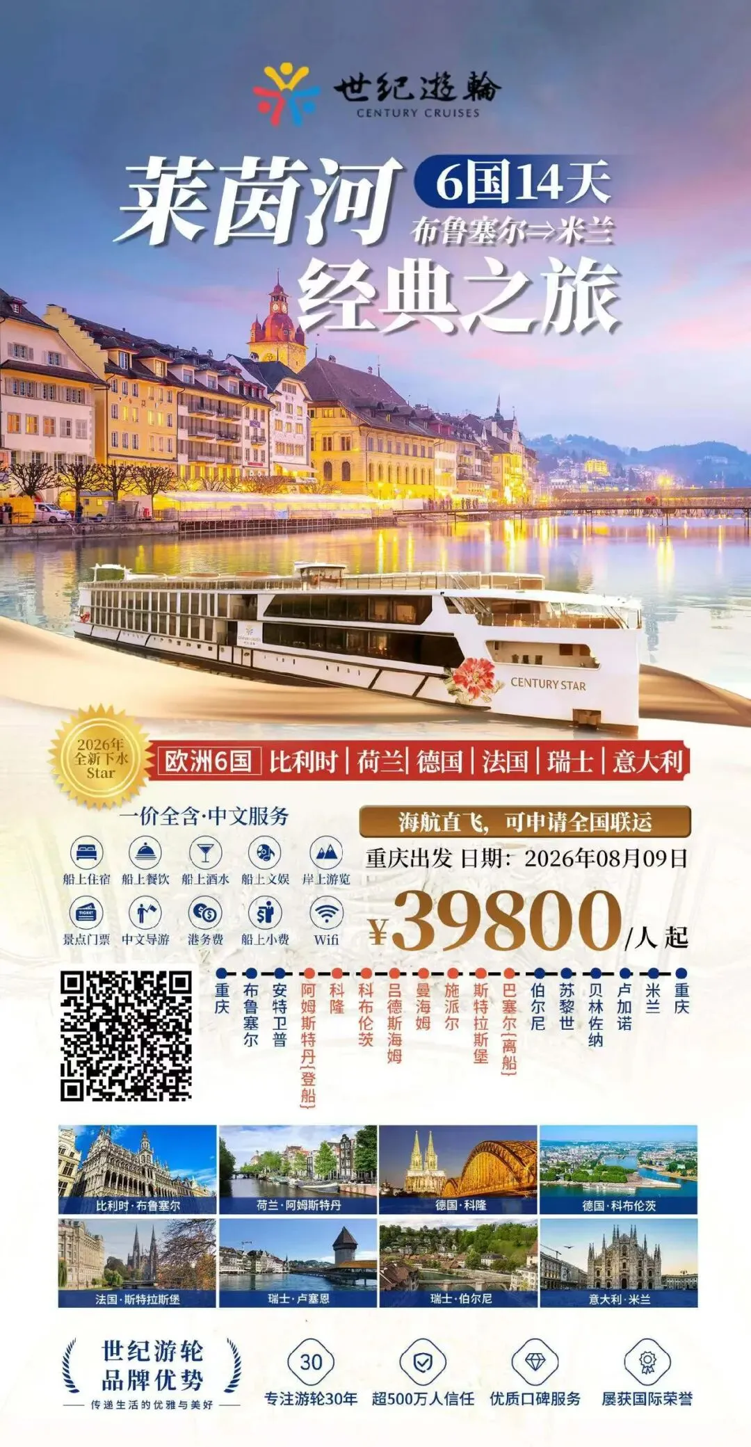 2026欧洲旅游坐世纪游轮,中国游客会更开心和适应。[愉快]