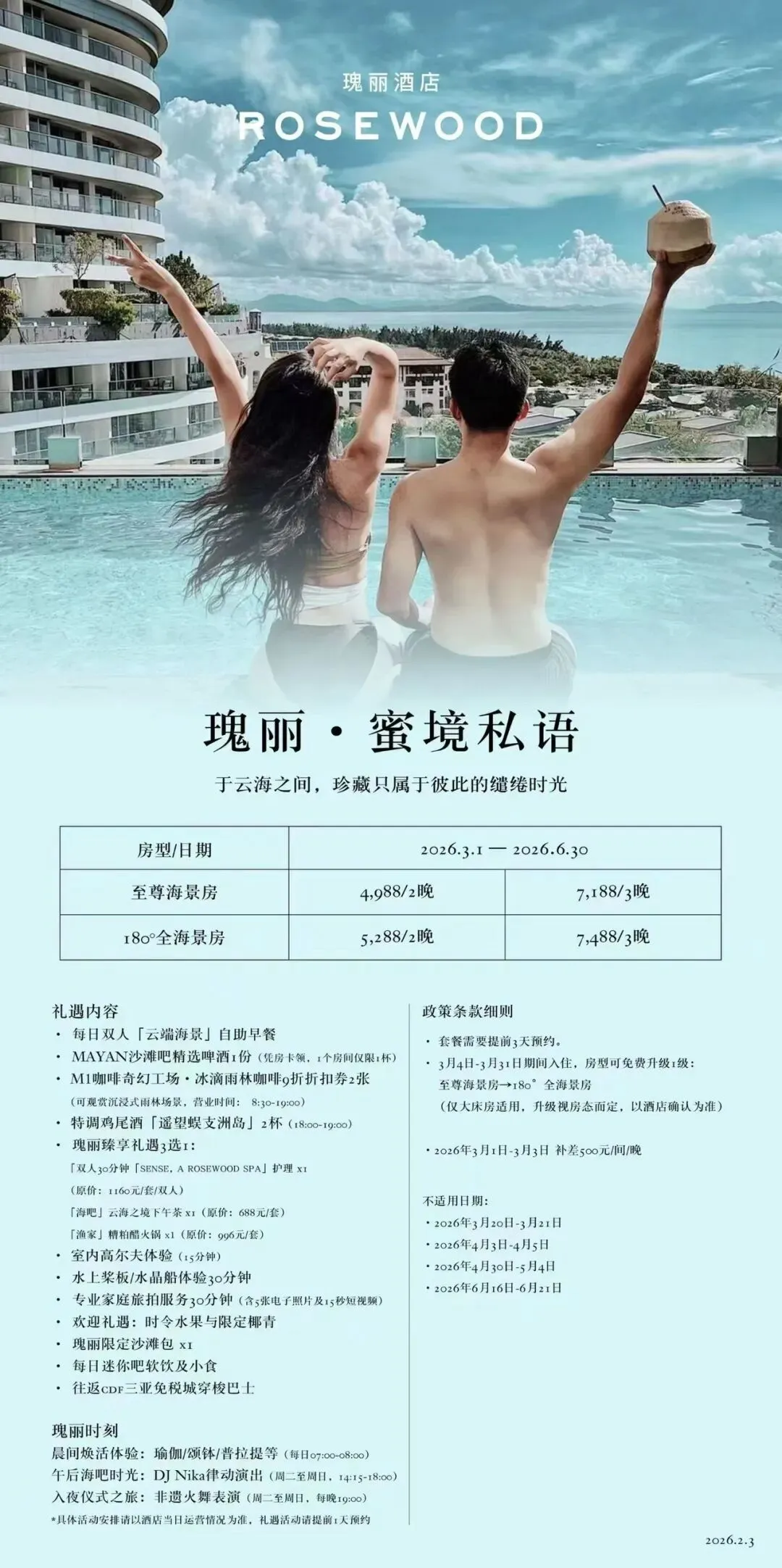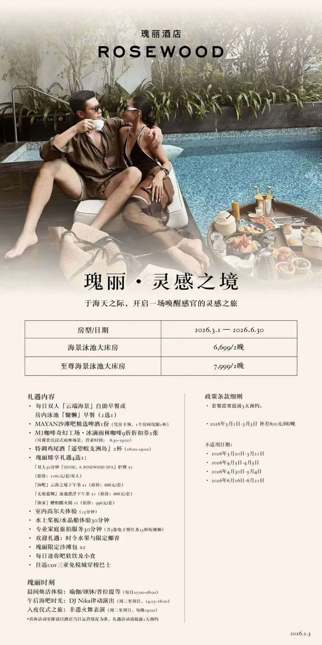 五、三亚|瑰丽酒店,3月1日开始可以预约,3月4日起有提前预约免费升级政策~👍