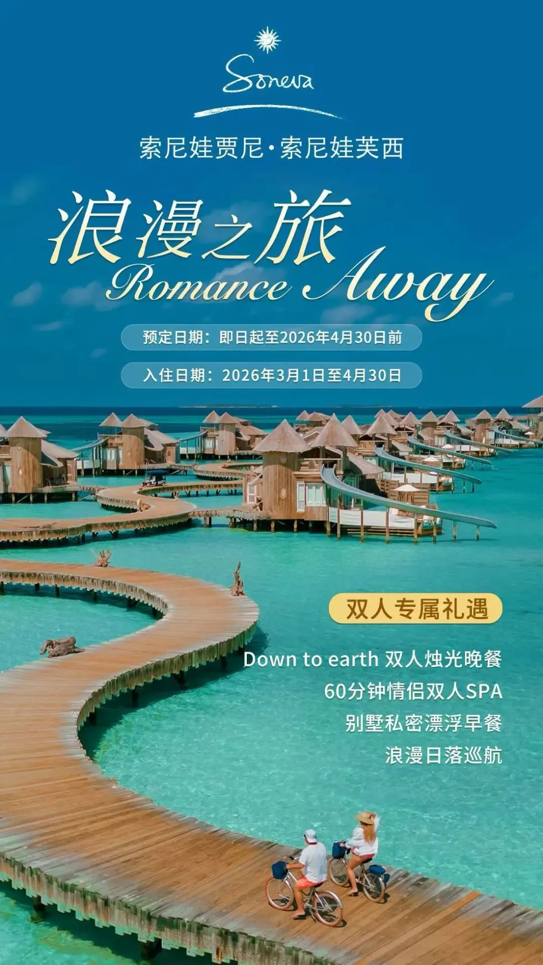 Soneva Jani & Soneva Fushi 限时推出浪漫双人情侣套餐 [爱心][爱心][爱心]3月1日 - 4月30日