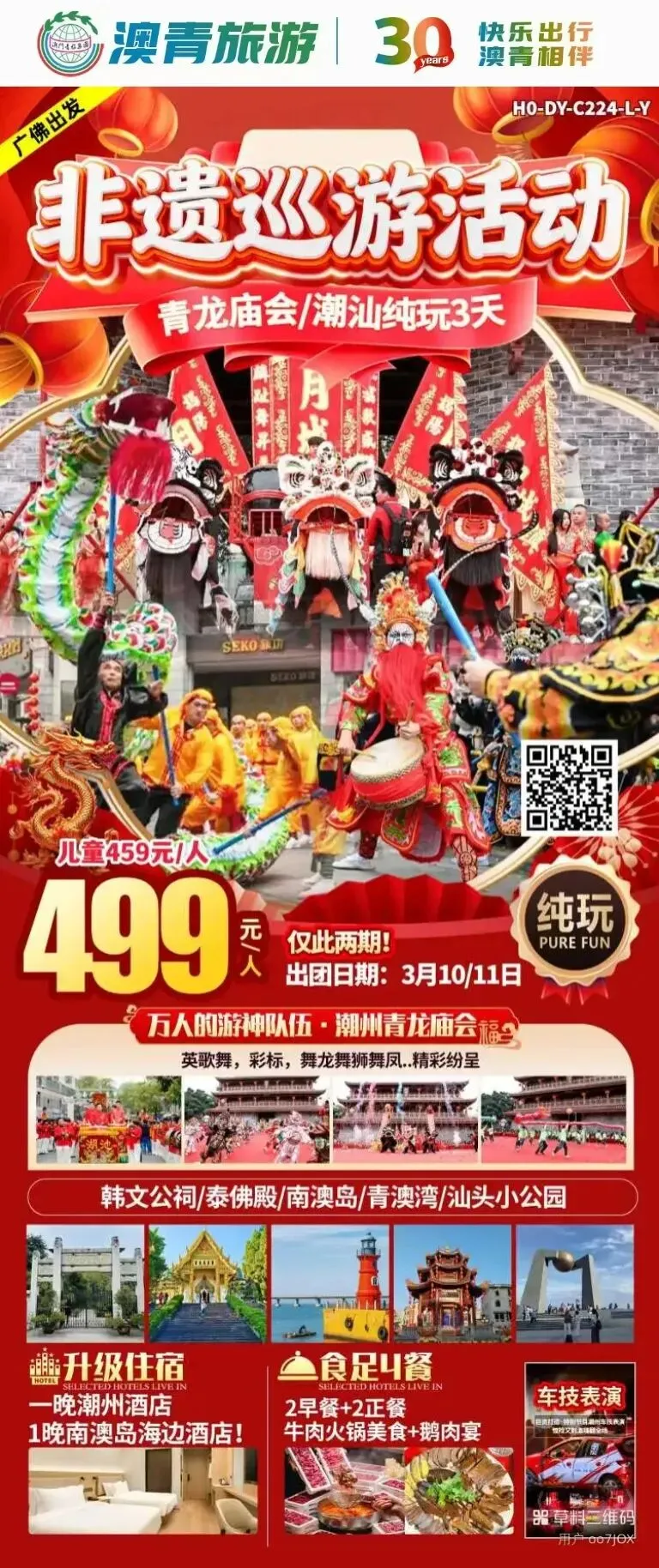 【非遗巡游活动 青龙庙会 潮汕纯玩3天】