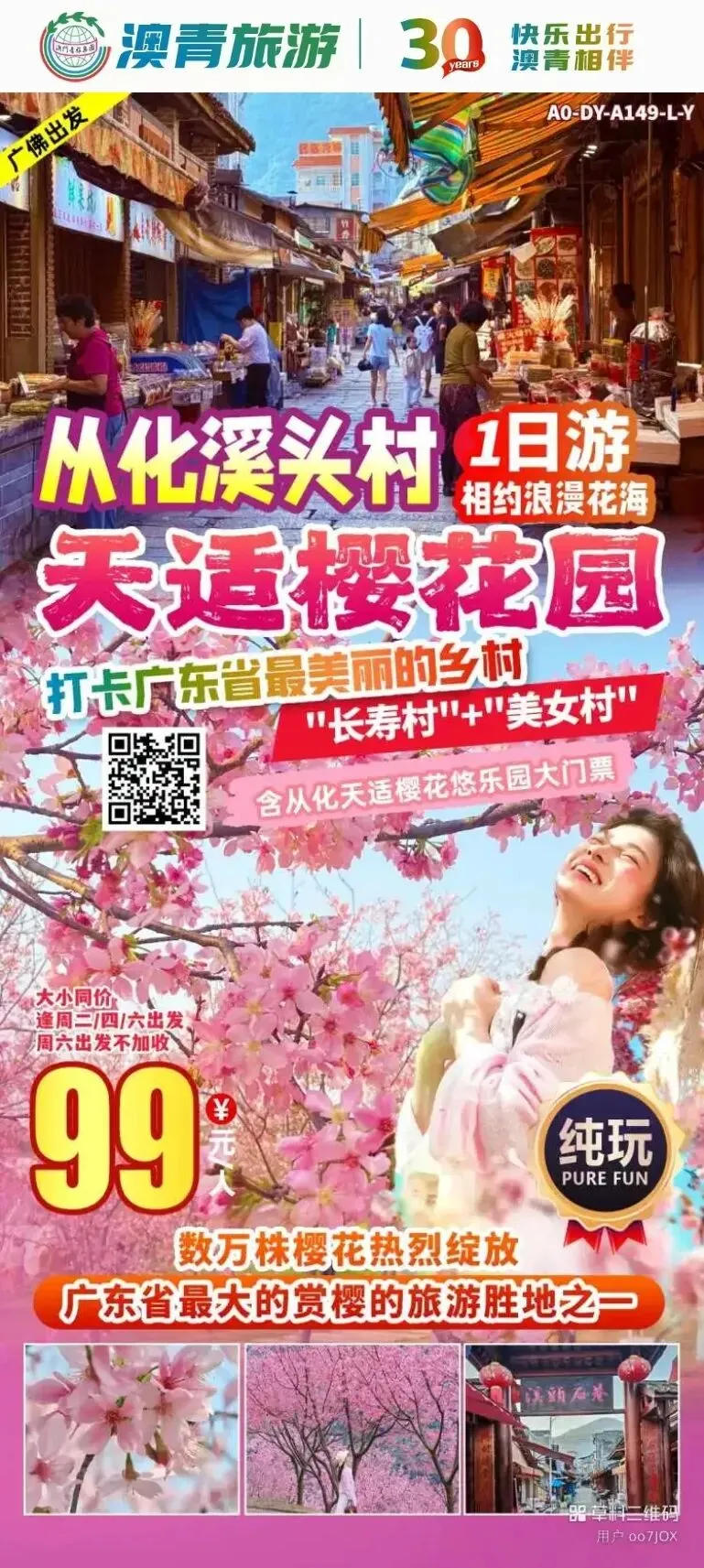 绝对纯玩,含从化天适樱花悠乐园大门票