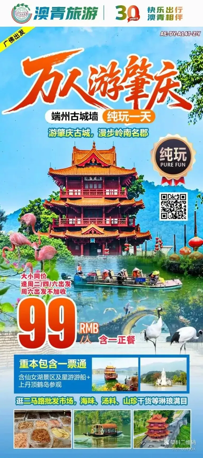 万人游肇庆 端州古城墙 星湖游船 纯玩一天