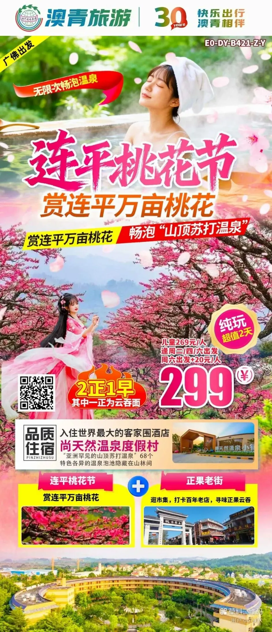 【连平桃花节】赏连平万亩桃花 无限畅泡“山顶苏打温泉”2正1早 纯玩2天