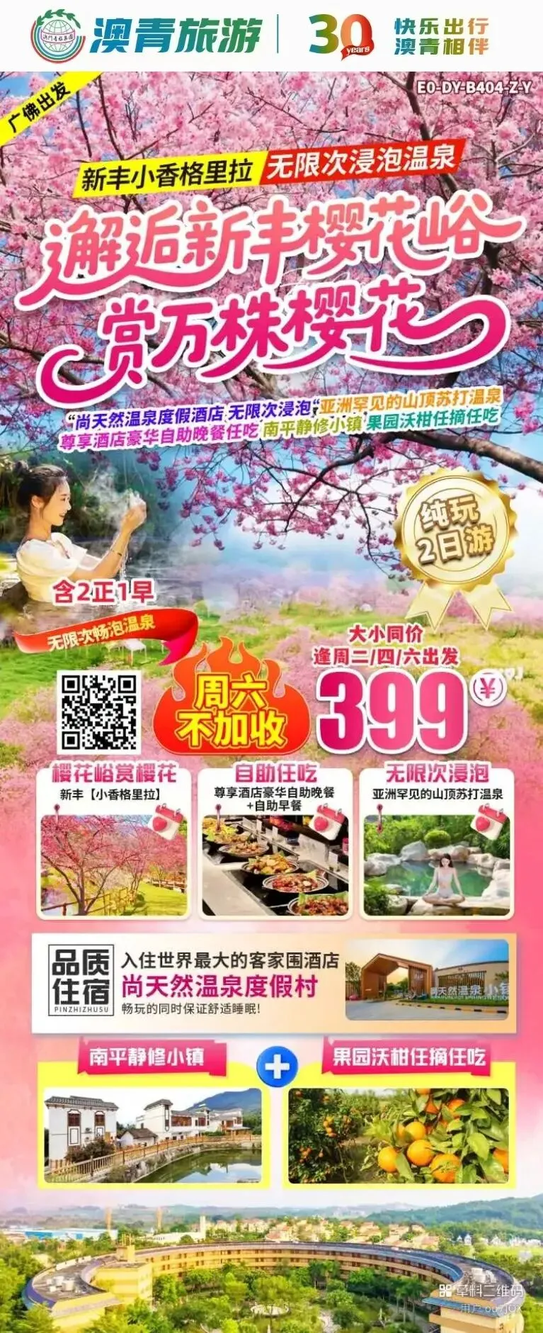 B404-Z 邂逅新丰樱花峪赏万株樱花 无限次浸泡“亚洲罕见的山顶苏打温泉” 尊享酒店豪华自助晚餐任吃 纯玩2日游