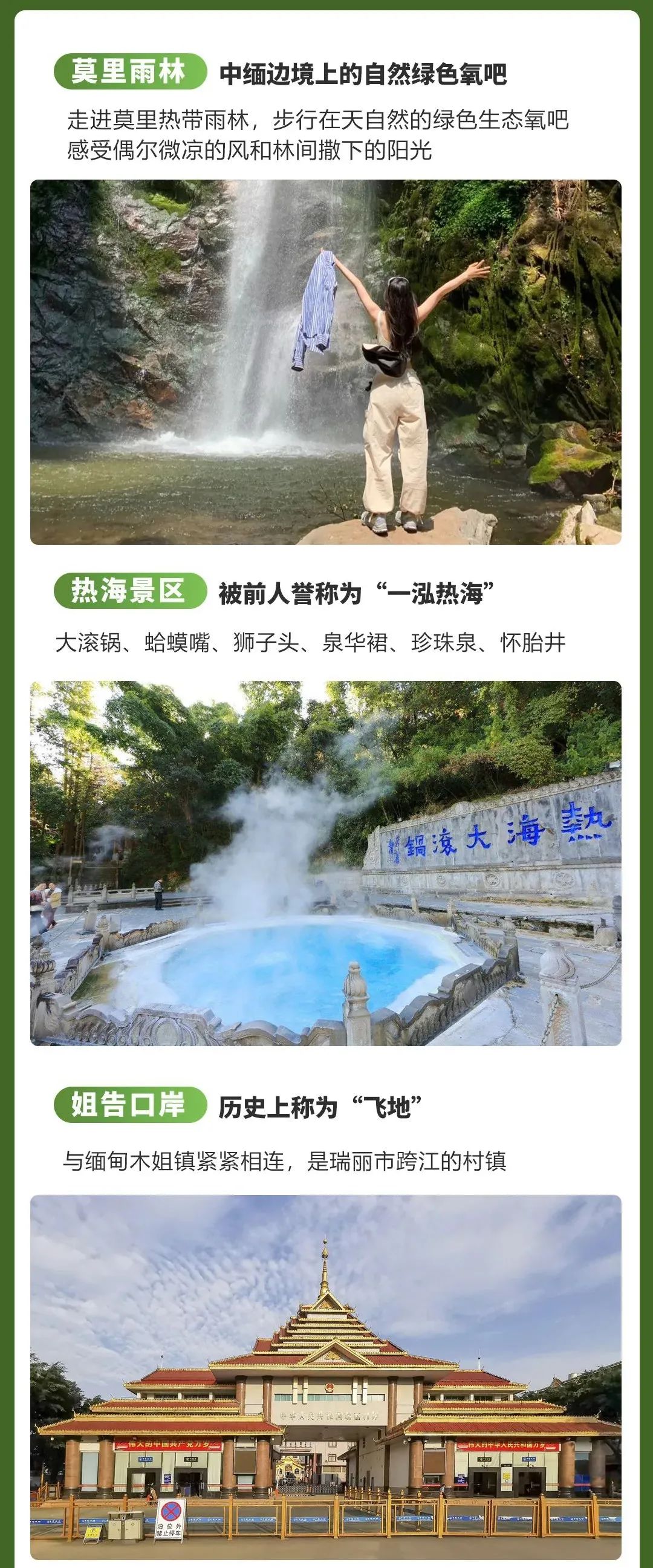 2、门票:5、门票:热海+电瓶车,和顺古镇,北海湿地+电瓶车,一寨两国,莫里瀑布,勐焕金塔(不含景区内个人娱乐项目)。其他景点均为免费;