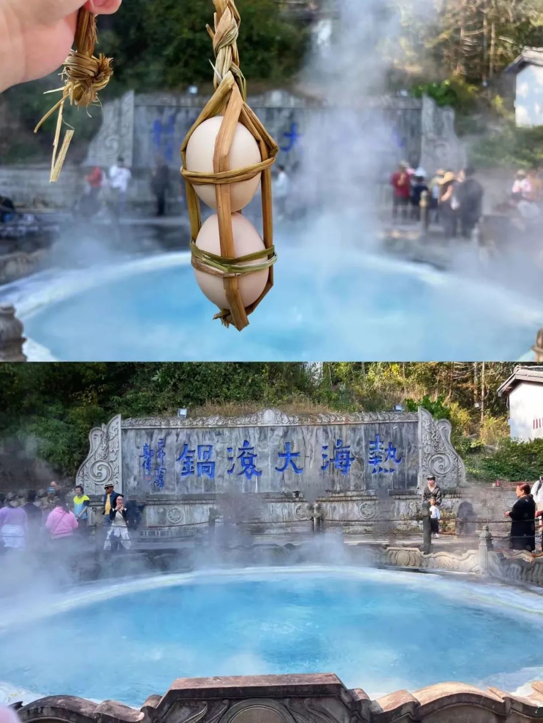 后游览腾冲地标必打卡惊叹亿万年自然奇迹---【热海公园】(游览时间约3.5小时,含往返电瓶车),热海景区被称为天然温泉地热博物馆,素有“一泓热海”之称。硫磺味弥漫在空气之中,大小各异的热泉喷薄而出,冰火交融,蔚为壮观。体验温泉煮鸡蛋。