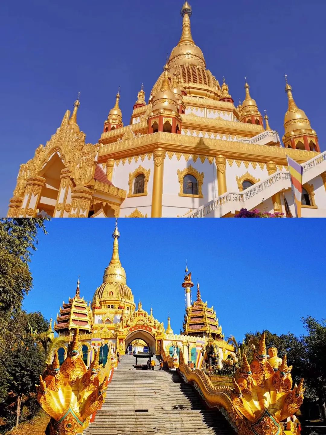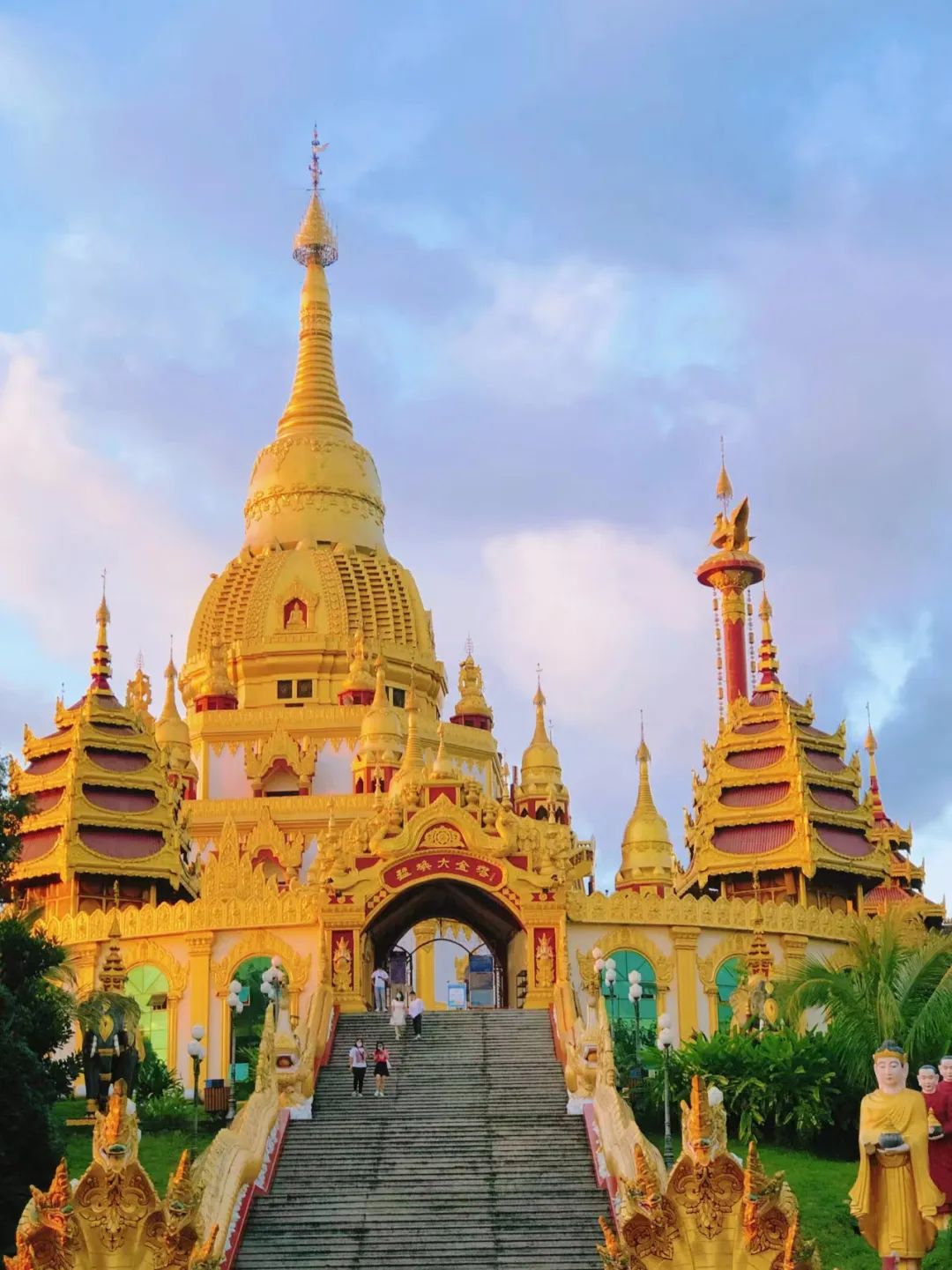 后前往【勐焕大金塔】,青山绿水间的“勐焕大金塔”金光灿灿,光彩夺目,雄伟壮观,更显神圣。是芒市标志性的建筑,也是生活在这里的傣族人民的圣地。勐焕大金塔是中国第一金佛塔,亚洲第一空心佛塔。