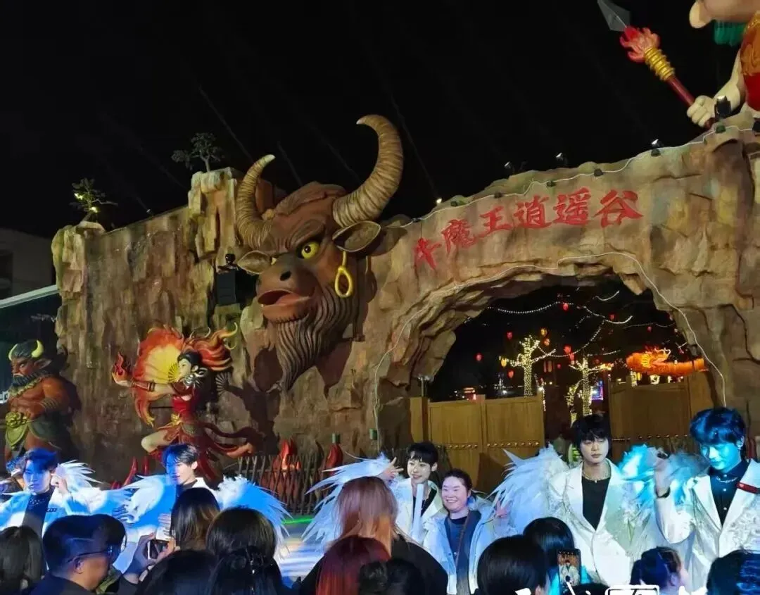 非遗打铁花、飞天火壶、光影秀与实景演出叠加,日间游乐与夜间狂欢无缝衔接,《牛魔王娶亲》等特色场景持续刷屏短视频平台,全网传播量破亿。