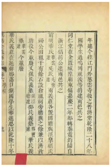 “华氏义庄,在荡口镇。清乾隆间华进思、华公弼父子创建,计田一千三百四十亩,赡族济贫,规条详备。其后嗣续增,至同治间,田逾四千亩,为江南义庄之最。”