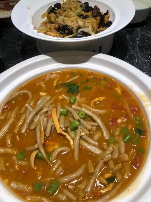 早上来一碗莜面鱼鱼,撒葱花,浇臊子,热气顶脸。