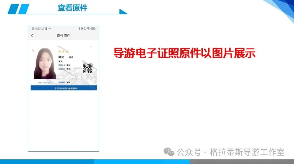 恭喜你,导游电子证照申领成功了,可以点击“查看原件”展示电子证照