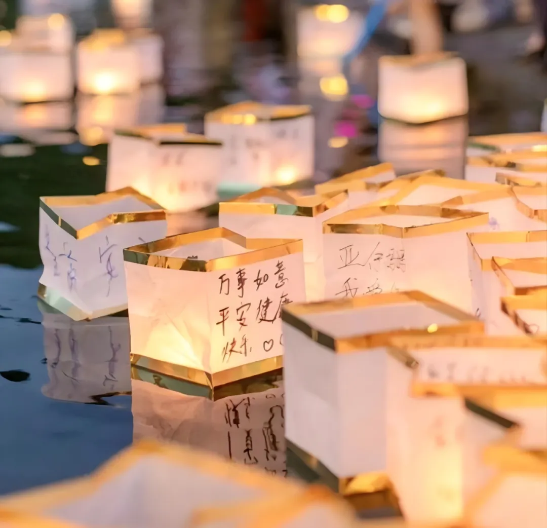 亲手点亮制作的水灯,沿湖有序投放,重现“春江灯海”的绝美盛景,为家人祈愿新年平安顺遂。