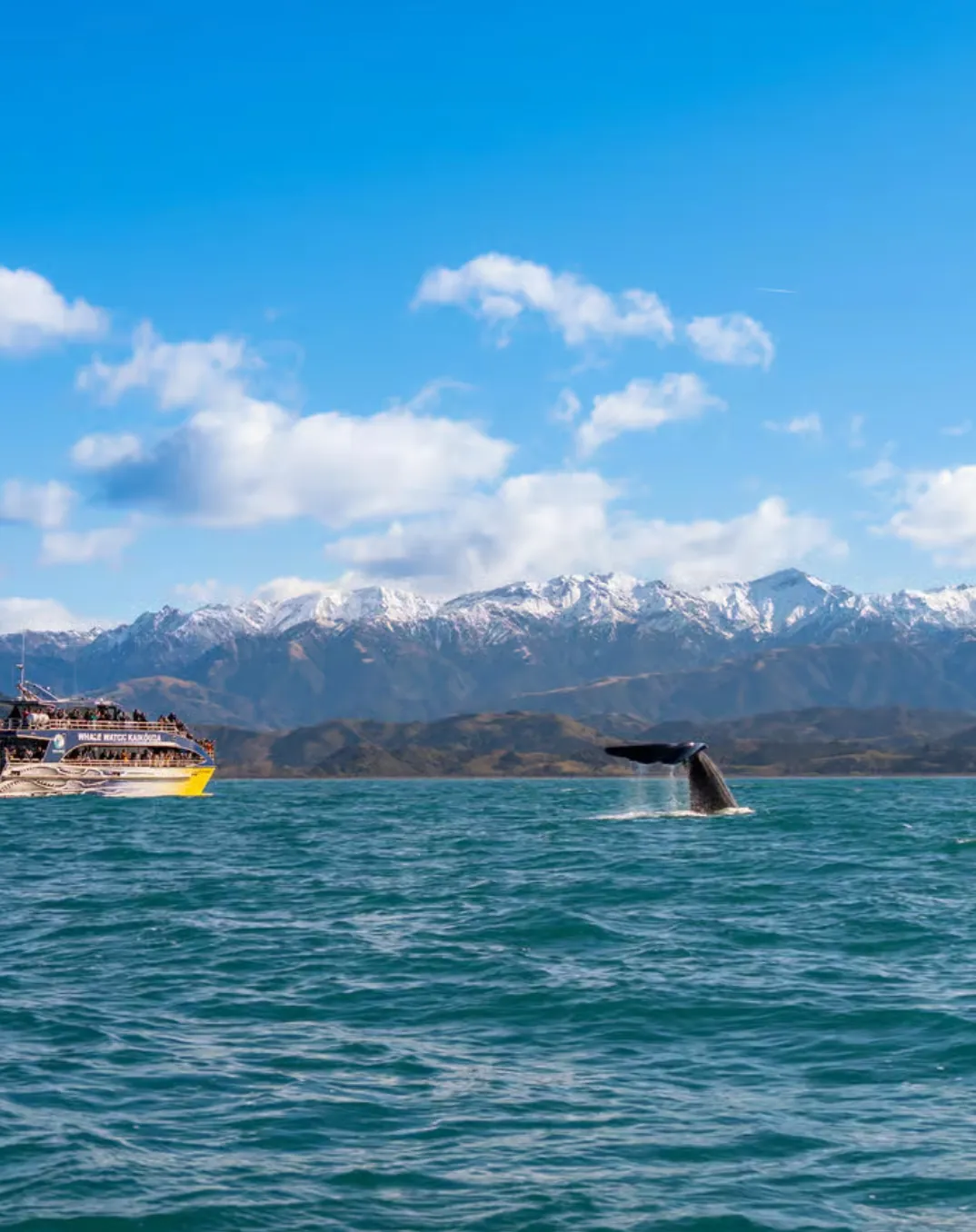凯库拉的观鲸体验举世闻名,出海观鲸看到鲸鱼成功率高达95%,这里是为数不多的全年都能看到抹香鲸的地方,它们常年在凯库拉海域游曳捕食,喷着几米高的水柱,经常在下潜时展示它巨大的鲸尾。