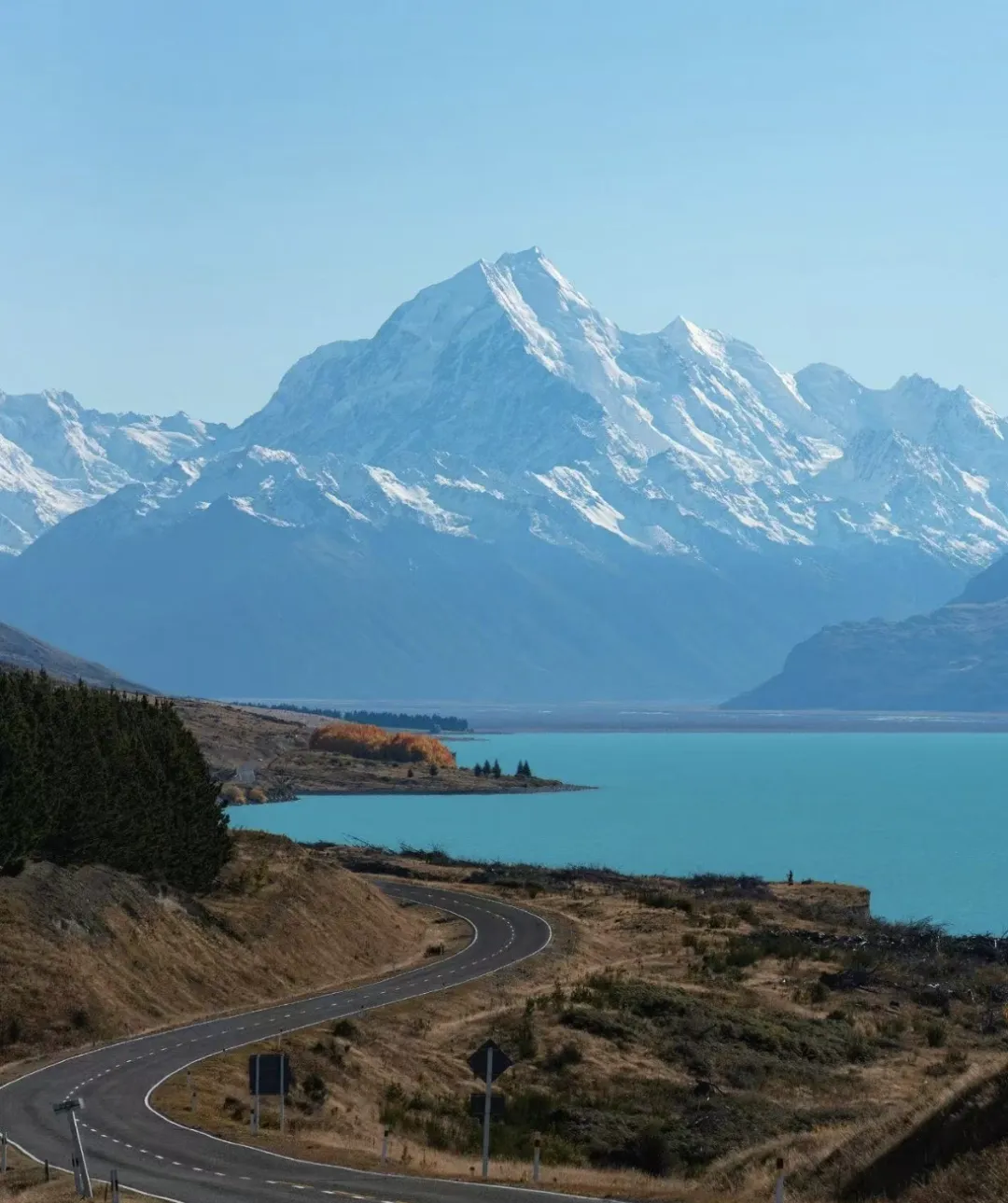 库克山从蒂卡普湖出发,沿着8号公路一路南行,再转入80号公路驶向库克山(Mount Cook),还能看到蓝宝石普卡基湖。