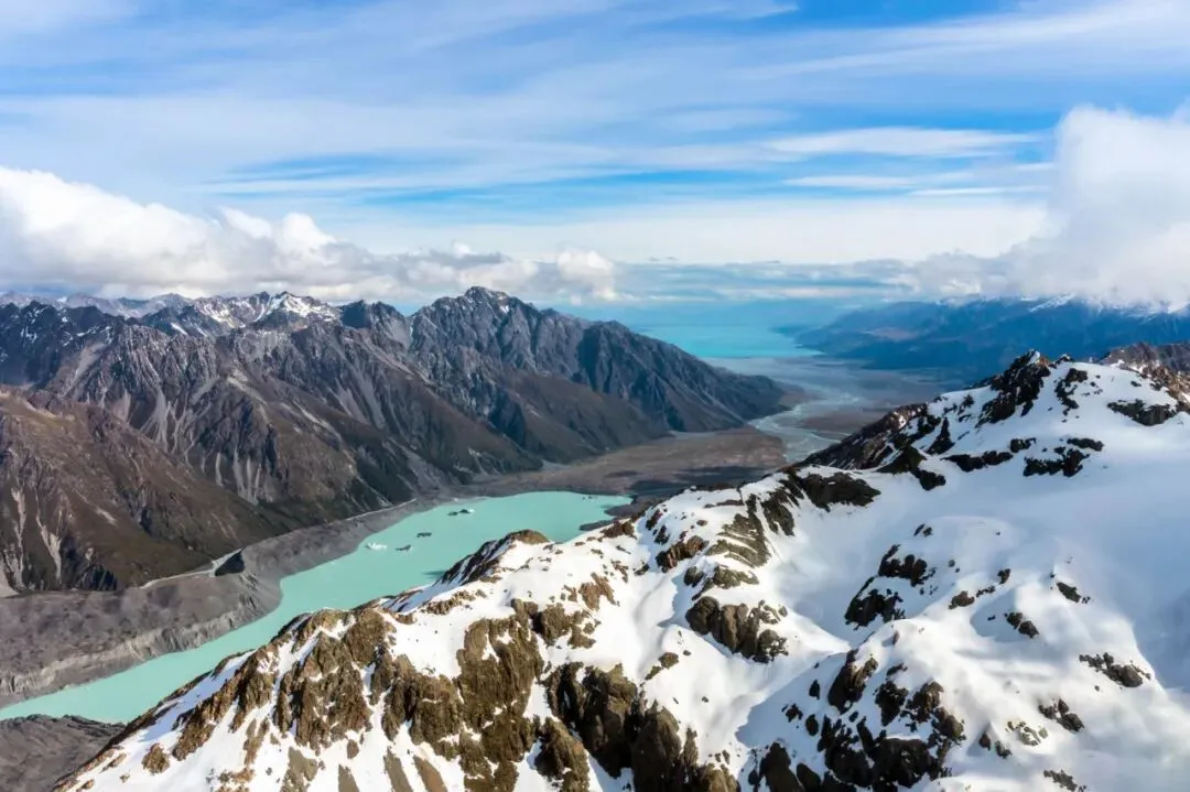 库克山国家公园中三分之一的地方常年积雪或结冰。在这里可以近距离体验新西兰最大的冰川——塔斯曼冰川(Tasman Glacier)。全长29公里,宽2千米,深600米。