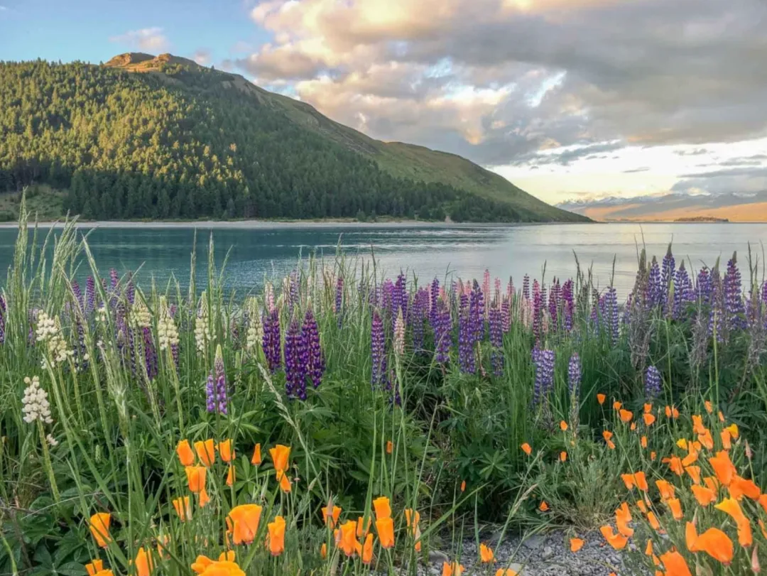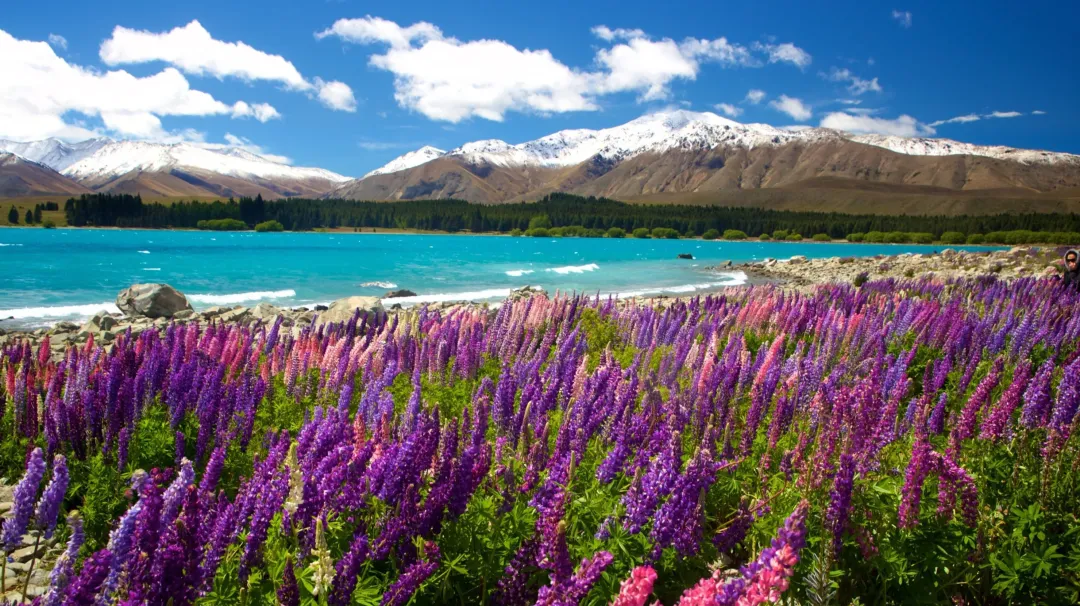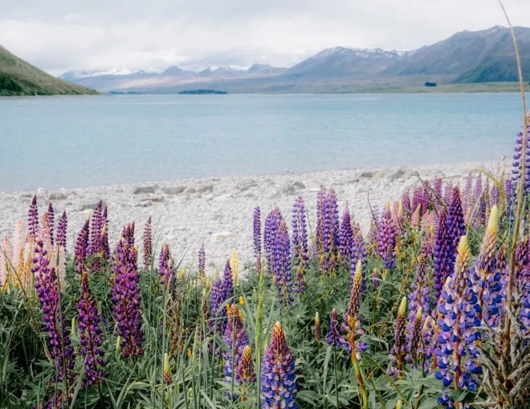 春夏季节(11月-2月)湖边也会开满鲁冰花(Lupins),紫色、粉色、白色的鲁冰花随风摇曳,非常出片。