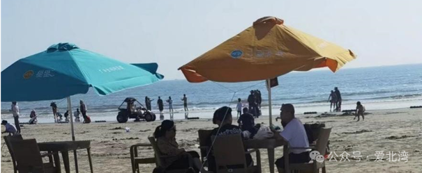 银滩一角——伞下茶话会