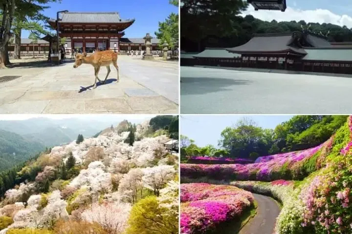 若是從大阪出發,有兩種方法前往。一種是搭乘JR前往,另一種是搭乘JR或者地下鐵再換乘近鐵電車。搭乘JR電車時,可從大阪站搭乘大和路線快速,用820日幣,不須轉車,50分鐘就能到達JR奈良站了。(個人較推薦乘搭近鐵觀光列車前往)1.東大寺東大寺是於8世紀由國家建立的寺廟,現已被指定為世界遺產。大佛殿為世界最大規模的木造建築,殿內設有展示了許多雕像的法華堂與二月堂。在二月堂每逢春季都會舉辦奈良獨特的「汲水儀式」,此外在這裡還能眺望奈良的街景。大佛殿內設有高達15公尺的大佛,在南大門還有金剛力士像,歡迎大家前來觀看。法隆寺是世界上最為古老的木造建築,於7世紀建設。現在這裡分為以五重塔和金堂為中心的西院伽藍和以夢殿為中心的東院伽藍,這裡同時也是世界遺產。3.奈良公園奈良公園巨大的園內,除了有東大寺、春日大社、興福寺、正倉院等被指定為世界遺產的寺廟和建築外,還有浮見堂和淺茅原願地等名勝景點與奈良國立博物館等眾多的觀光景點,想要一天內全部逛完都有點困難。同時,在奈良公園東側的若草山的後方,是隸屬春日大社的春日山原始林,林內也設有行人道。而在奈良公園最為有名的是1000頭以上的鹿。在夏季這裡會舉辦用圓號呼喚鹿群的「鹿群聚集」,在秋天還有「鋸鹿角」活動,這些活動都深受遊客們的喜愛。春日大社是自古長官著神事、祭祀的藤原氏為了保護當時的都城,平城京,想將沒有神明守護的三笠山召喚來神明而建立。這裡供奉著藤原氏的氏神,朱紅色的柱子、白色的墻壁、絲柏皮的屋頂,這個一如過往的樣貌是因為每逢20年在社內便會舉辦一次名為“式年造替”的改裝,就如同三重県伊勢市伊勢神宮一樣。這裡同時也被認定為世界遺產。朱漆的回廊與釣燈籠交織而成的景色令人印象深刻。高田千本櫻(大中公園)沿著河川兩岸的櫻花隧道,長達2.5公里長。 晚上時燈籠亮起櫻花在夜間的魅力,不同於其他夜櫻的魅力,吸引不少人前來賞櫻。白天則是可以走到近鐵南大阪線的高田市站時,是鐵道迷想要捕捉櫻花與近鐵電車共演的知名拍攝景點。在過去的都城「平城京」的寬廣遺址上,建有一個復原了當時建築的設施—平城宮跡。設施內有設有大極殿、朱雀門、東院庭園和平城宮跡資料館與復原事業情報館、遺構展示館。這裡作為世界遺產的一部分,是一處可以感受到時間停滯的場所。7.奈良町奈良町是在元興寺的舊址為中心的區域。這裡正是被稱為奈良町都市景觀形成地區。元興寺同樣也被指定為世界遺產。寺上屋頂的瓦礫有一部分是當年的原物,也是日本最為古老的瓦。在「奈良市奈良町格子之家」還能看到門面狹窄,內部走道卻很長的房屋建築,同時這裡還能親自體驗到江戶時代的居住感。町內還有時尚的咖啡廳、可愛的雜貨店與各種工作室,歡迎大家前來購物欲參加各種體驗活動。漫步於奈良町,有可能還會看到在家門口有紅色的玩偶垂吊著的景象。這裡就是位於奈良町的佛堂—「庚申堂」,在這裡的猴子會代替人們承受住災難進而守護大家。西元703年建立的壺阪寺以供奉守護眼睛、治療眼疾的十一面千手觀世音菩薩聞名,這裡其實是2020年突然紅起來的冷門賞櫻景點奈良壺阪寺,位在奈良縣高市郡高取町算是離奈良主要景點非常遠,交通並不方便,但境內的佛像與櫻花林共演的珍貴奇景,還是吸引許多人願意千里迢迢遠道而來,即使過了櫻花季,也是一處能欣賞到繡球花的賞花景點。