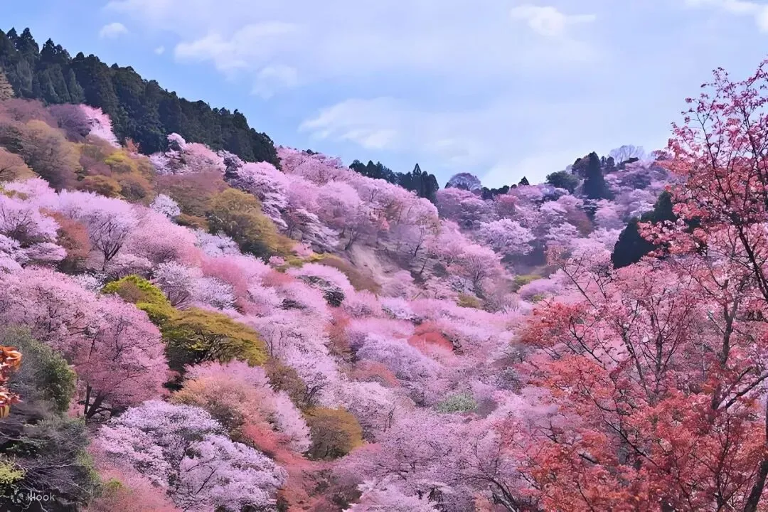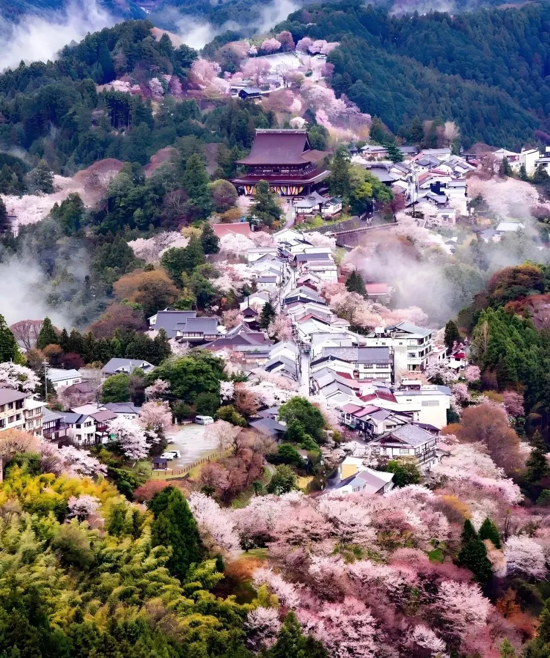 在法隆寺旁的中宮寺,寺內供奉的本尊——菩薩半跏思惟像(國寶),是飛鳥時代後期的作品,被譽為與蒙娜麗莎、斯芬克斯並列的「世界三大微笑像」之一。佛像輕坐,右腿橫盤至左膝,手掌觸腮沈思,宛如羅丹的「思想者」。因此這尊佛像也被稱為「東洋的詩人」,它的微笑也被稱為「古典的微笑」。這尊特異的木雕菩薩像可謂是當時雕刻中的最高傑作。吉野山是賞櫻名地。這裡種植了約200種、30,000棵的櫻花,當所有櫻花一齊盛開的景象,也被稱為「一目千本」,意指「一眼就能看到千棵櫻花的豪華感」。不過櫻花也有不同的花期,一般是以下千本、中千本、上千本、奧千本這4個區域按順序開花,因此大家可以在較長的時期內觀賞到櫻花。在夏季這裡還有「蛙跳行事」、「七夕慶典」和「櫻燈火」等各式各樣的活動。在秋天則能搭乘纜車觀賞紅色。被大雪覆蓋的冬季寂靜無比,而在節分節分還能看到鬼在街道上遊行。