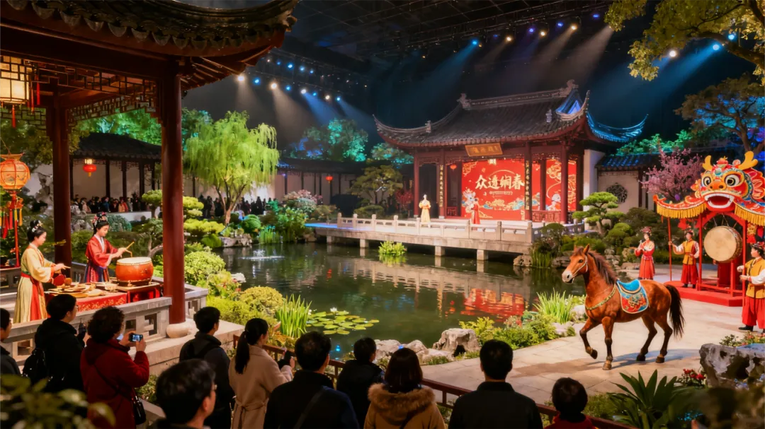 活动简介:活动以众春园为空间载体,通过构建行浸式剧场,设计贯穿园区的剧情动线,安排分点位NPC互动表演,并结合常态化非遗技艺展演,形成“白天逛园赏艺、夜晚行浸观演”的全时段文化体验场景。