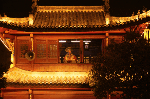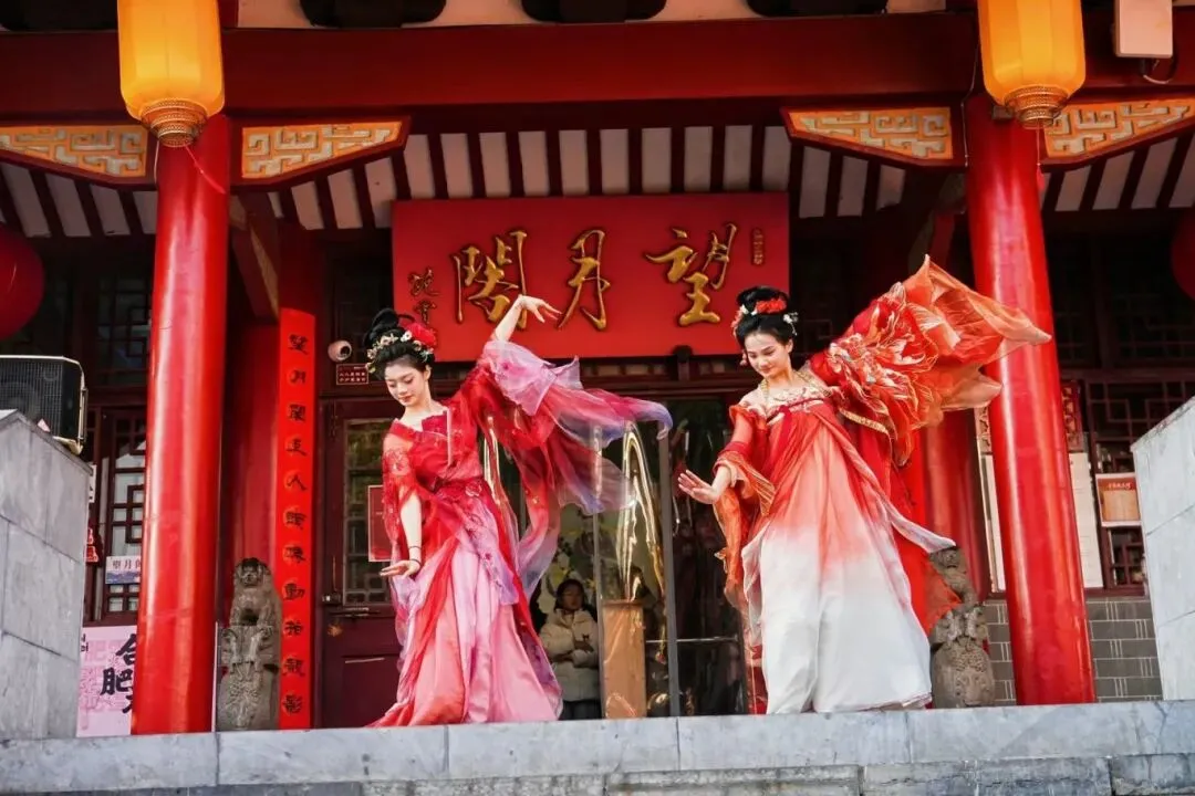 二楼传来婉转民乐,丝竹入耳;一楼舞者翩跹而起,衣袂如云。楼上楼下,声色相融,让你一站尽享双重美学。