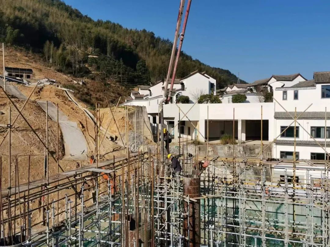 一月份畲族风情康养度假综合体推进情况:婚礼中心区块主体建筑砌墙完成100%;康养度假酒店区块接待中心完成结顶,酒店结构封顶;住宅区块土石方开挖外运60%。