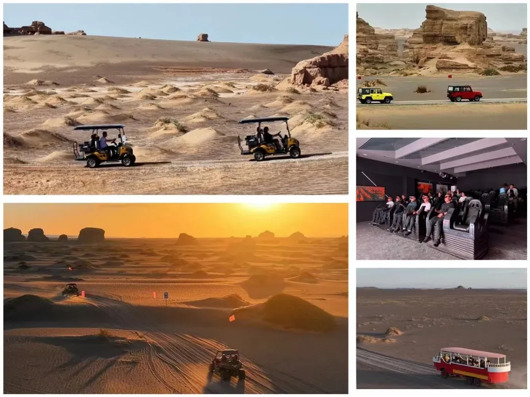 春节期间景区多项特色游玩项目正常营业,您可以在5D影院沉浸式感受光影特效,了解雅丹地貌形成过程与地质奇观;也可乘坐越野车驶入秘境区域,近距离观赏独特风蚀地貌,体验戈壁越野的壮阔与惊险;还能自驾观光电车自由慢行、随心拍照,或乘坐沙漠冲浪车驰骋沙地、感受速度与激情,同时可体验卡丁车项目,为游览增添更多乐趣。
